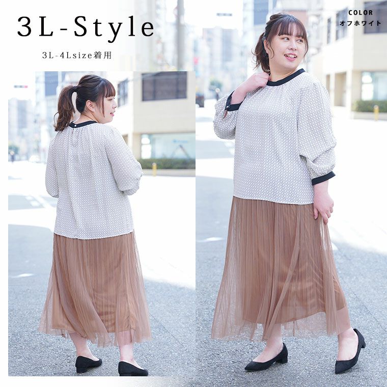 他の画像を見る カットソー プルオーバー LL 3L 4L 春 春物 春服 ぽっちゃり ゆったり かわいい おしゃれ カジュアル ナチュラル プラスサイズ きれいめ 上品 ガーリー フロッキー柄 切り替え キャンディスリーブ リブトップス | 大きいサイズの通販ならハッピーマリリン 価格 ¥ 3,290 税込 4.50 お気に入りに登録する