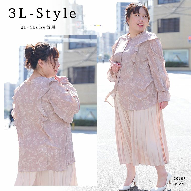 他の画像を見る シャツ トップス LL 3L 4L 5L 6L 春 春物 春服 ぽっちゃり ゆったり かわいい おしゃれ カジュアル ナチュラル プラスサイズ ビッグフリル きれいめ 上品 華やか 高見え さらり 線画 花柄 フリルブラウス | 大きいサイズの通販ならハッピーマリリン 価格 ¥ 4,990 税込 4.50 お気に入りに登録する