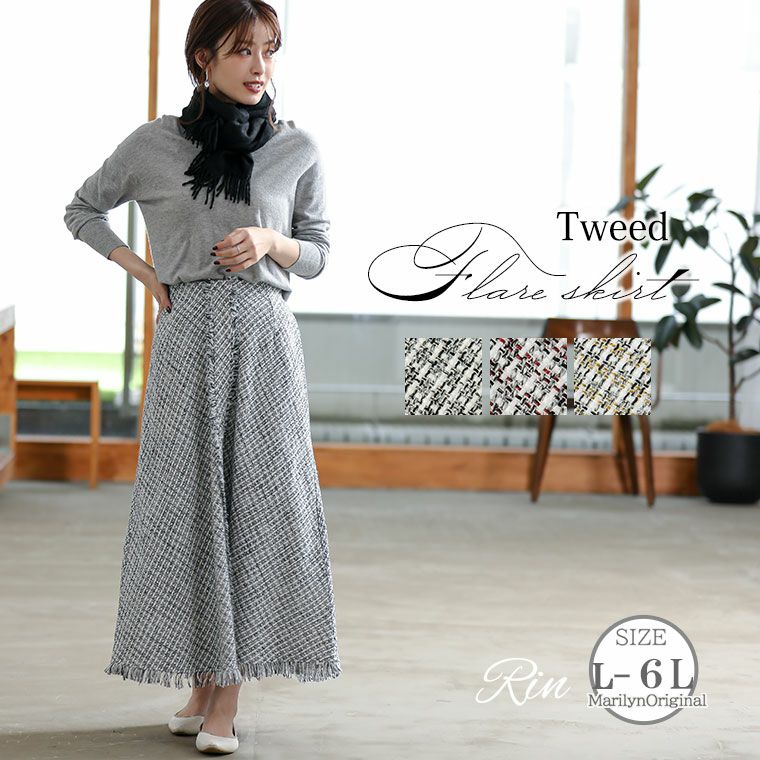 他の画像を見る オリジナル ボトムス LL 3L 4L 5L 6L 冬 冬物 冬服 リン ぽっちゃり ゆったり キレイめ 上品 高見え プラスサイズ フレアシルエット かわいい おしゃれ カジュアル マリリンオリジナル【Rin】美人フェイスのツイードフレアスカート | 大きいサイズの通販ならハッピーマリリン 価格 ¥ 4,990 税込 3.33 お気に入りに登録する