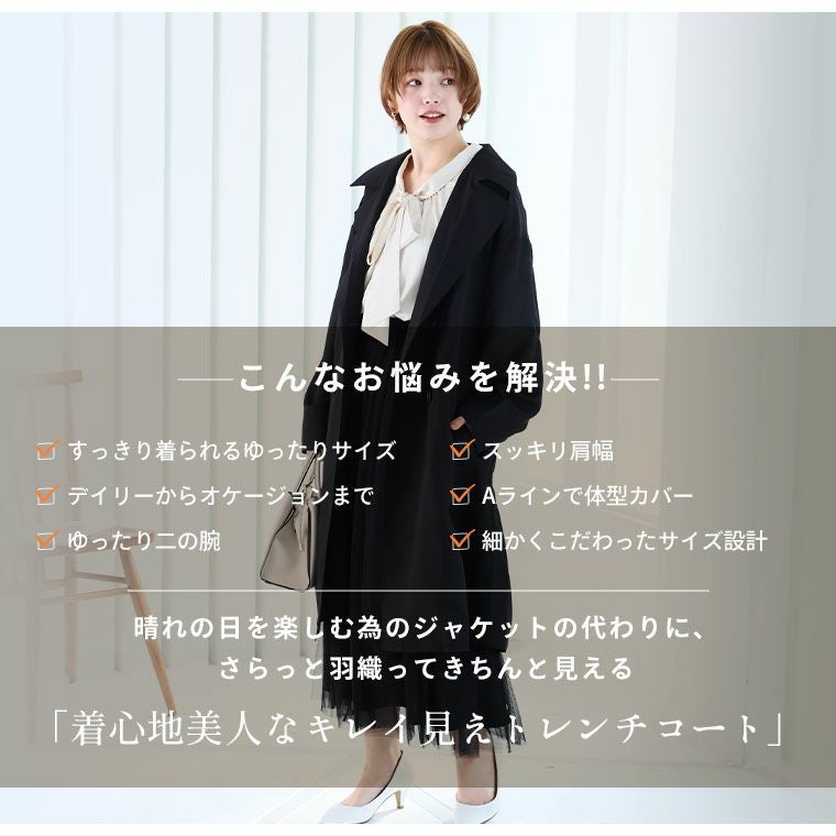 他の画像を見る オリジナル コート 羽織り LL 3L 4L 5L 6L 春 春物 春服 ぽっちゃり ゆったり お腹 胸周り 二の腕カバー 長袖 セレモニー オケージョン フォーマル 入学式 卒業式 ココハレシリーズ 撥水加工付き 晴れ晴れ トレンチコート【セレモニー】 | 大きいサイズの通販ならハッピーマリリン 価格 ¥ 5,990 税込 3.14 在庫切れ お気に入りに登録する
