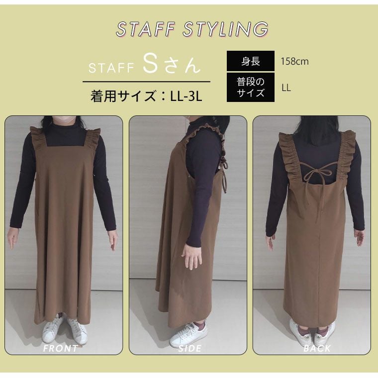他の画像を見る ジャンパースカート LL 3L 4L 春 春物 春服 ぽっちゃり ゆったり 体型カバー フェミニン ガーリー かわいい おしゃれ カジュアル ナチュラル プラスサイズ カットジョーゼット 肩フリル ジャンスカ | 大きいサイズの通販ならハッピーマリリン 価格 ¥ 2,990 税込 4.78 在庫切れ お気に入りに登録する