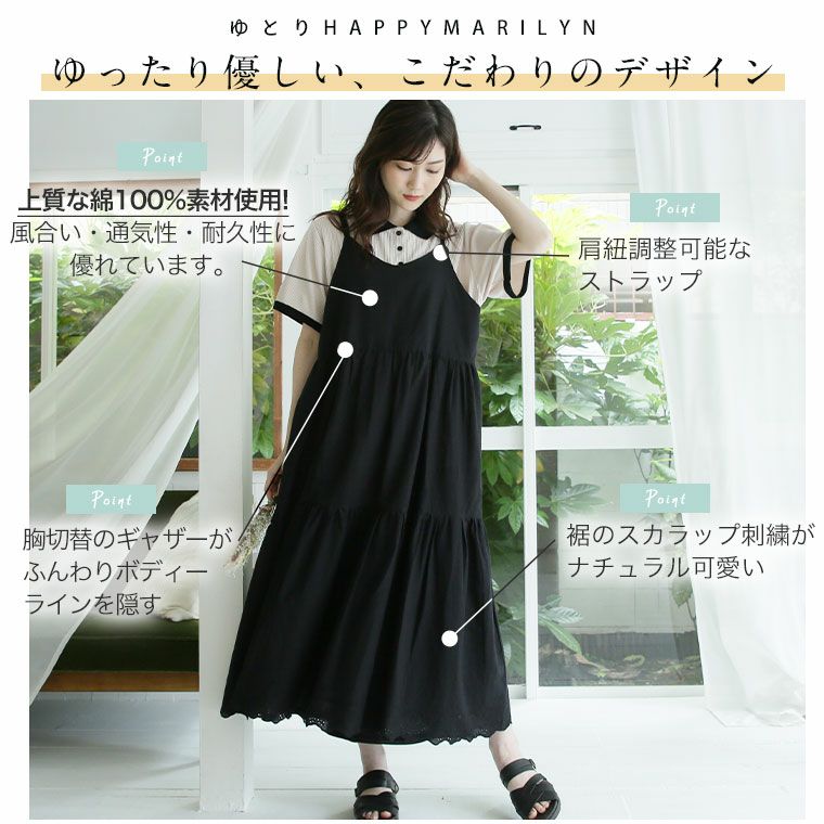 他の画像を見る オリジナル ワンピ デザインワンピ LL 3L 4L 5L 6L 夏 夏物 夏服 夏用 ぽっちゃり ゆったり お腹 太もも 胸周り 二の腕カバー お尻 腰周り キャミワンピ 「ゆとりMARILYN」綿100% 裾スカラップレース ワンピース | 大きいサイズの通販ならハッピーマリリン 価格 ¥ 3,990 税込 4.50 在庫切れ お気に入りに登録する