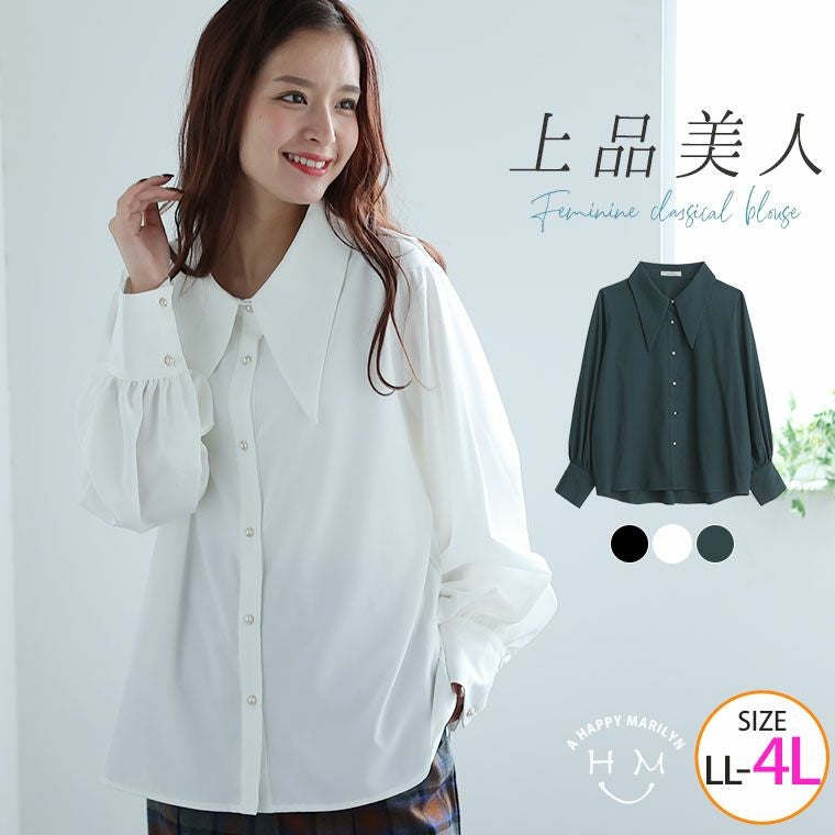 他の画像を見る ブラウス トップス LL 3L 4L 冬 冬物 冬服 ぽっちゃり ゆったり かわいい おしゃれ カジュアル プラスサイズ ナチュラル きれいめ 上品 ブロード無地 三角襟 ボリューム袖 シャツ | 大きいサイズの通販ならハッピーマリリン 価格 ¥ 3,990 税込 4.00 在庫切れ お気に入りに登録する