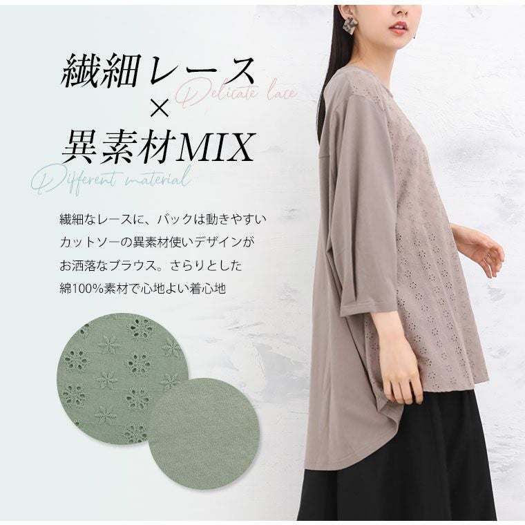 他の画像を見る オリジナル シャツ トップス LL 3L 4L 5L 6L 7L 8L 秋 秋物 秋冬 ぽっちゃり ゆったり お腹 胸周り 二の腕カバー 腰周り 七分袖 プラスサイズ さらりと 綿100% 異素材使い 刺しゅう レース ブラウス | 大きいサイズの通販ならハッピーマリリン 価格 ¥ 2,490 税込 4.23 在庫切れ お気に入りに登録する