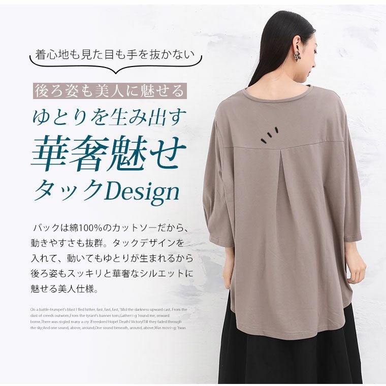 他の画像を見る オリジナル カットソー LL 3L 4L 5L 6L 7L 8L 秋 秋物 秋冬 ぽっちゃり ゆったり お腹 お尻 腰周り 七分袖 かわいい カジュアル プラスサイズ 楽ちんなのにキレイ見え バックフレア チュニック | 大きいサイズの通販ならハッピーマリリン 価格 ¥ 2,290 税込 4.10 在庫切れ お気に入りに登録する