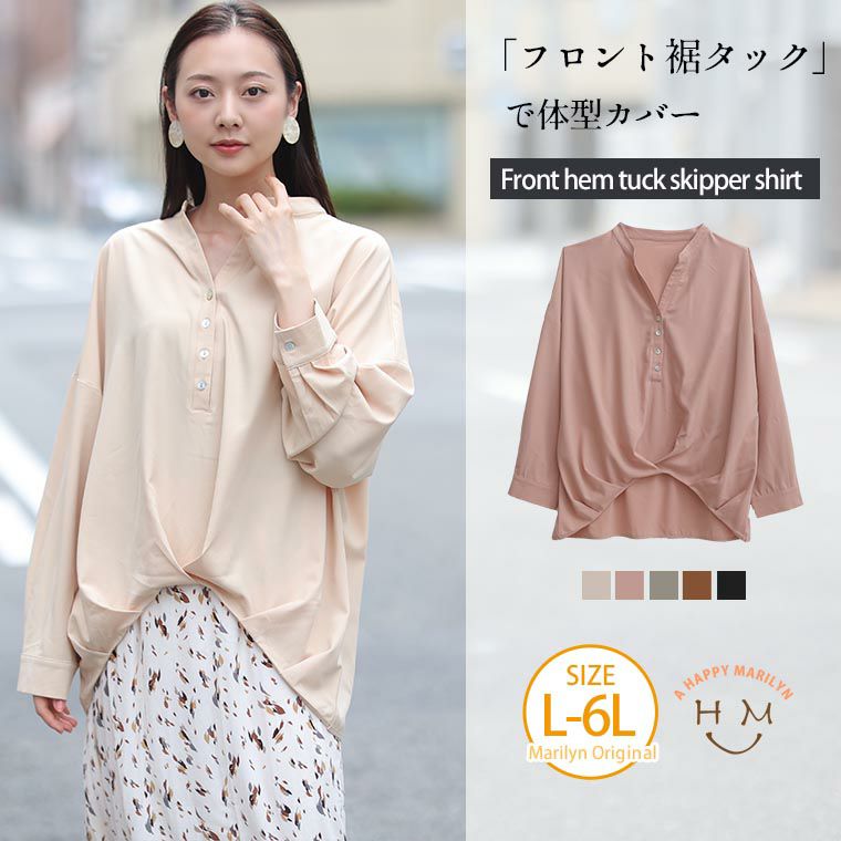 他の画像を見る オリジナル ブラウス トップス LL 3L 4L 5L 6L 秋 秋物 秋冬 ぽっちゃり ゆったり お腹 胸周り 二の腕カバー 腰周り 長袖 かわいい おしゃれ プラスサイズ ゆる綺麗 フロント 裾タック スキッパーシャツ | 大きいサイズの通販ならハッピーマリリン 価格 ¥ 2,790 税込 4.09 在庫切れ お気に入りに登録する