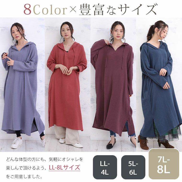 他の画像を見る オリジナル ワンピ デザインワンピ LL 3L 4L 5L 6L 7L 8L 秋 秋物 秋冬 ぽっちゃり ゆったり 綿 コットン かわいい おしゃれ カジュアル プラスサイズ 柔らか ダブルガーゼ の パーカーワンピース | 大きいサイズの通販ならハッピーマリリン 価格 ¥ 2,990 税込 4.19 在庫切れ お気に入りに登録する