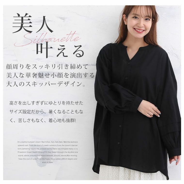 他の画像を見る オリジナル ワンピ ブラウス LL 3L 4L 5L 6L 秋 秋物 秋冬 ゆったり お腹 太もも 胸周り 選べる2丈 さらりと 綿100% タック袖 スキッパー コットン シャツ & シャツワンピース | 大きいサイズの通販ならハッピーマリリン 価格 ¥ 2,790 税込 4.24 在庫切れ お気に入りに登録する