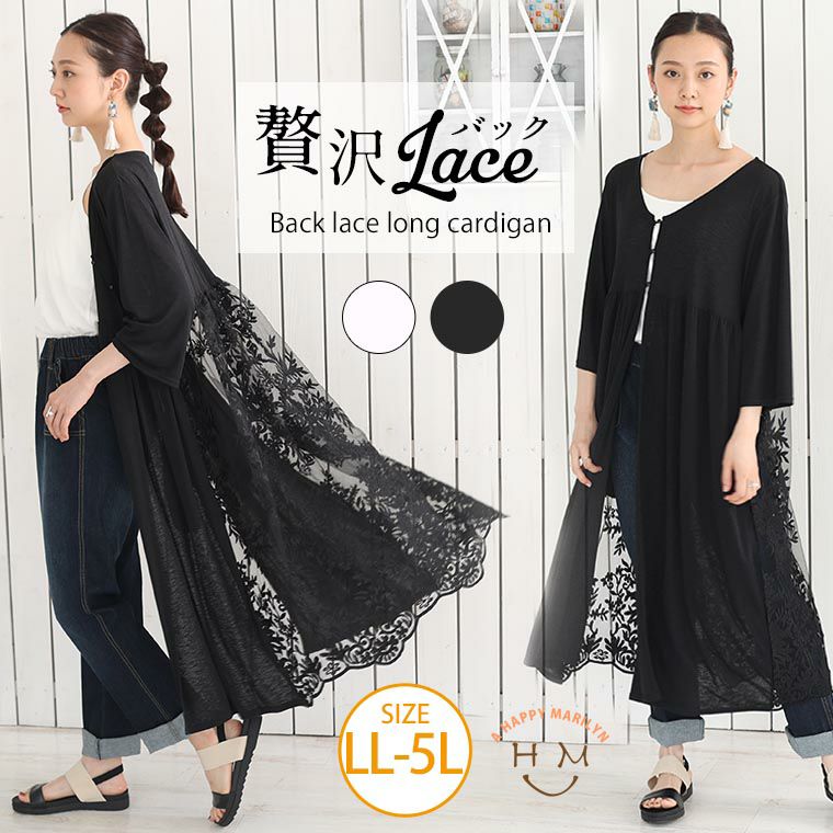 他の画像を見る トップス カーデ 羽織り LL 3L 4L 5L 夏物 夏服 夏用 ぽっちゃり ゆったり お腹 太もも 胸周り 二の腕カバー お尻 腰周り 七分袖 かわいい おしゃれ プラスサイズ バックレース ロングカーディガン | 大きいサイズの通販ならハッピーマリリン 価格 ¥ 4,989 税込 4.50 在庫切れ お気に入りに登録する