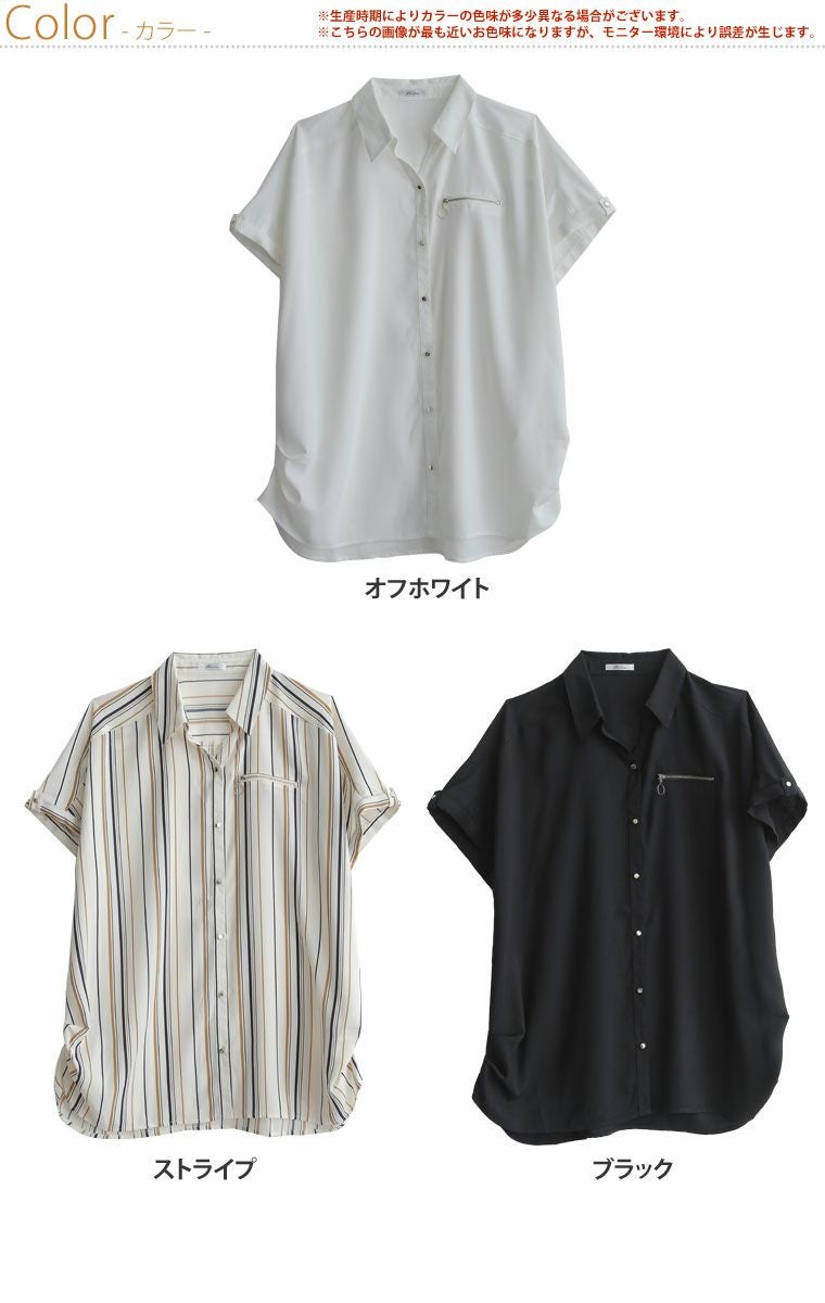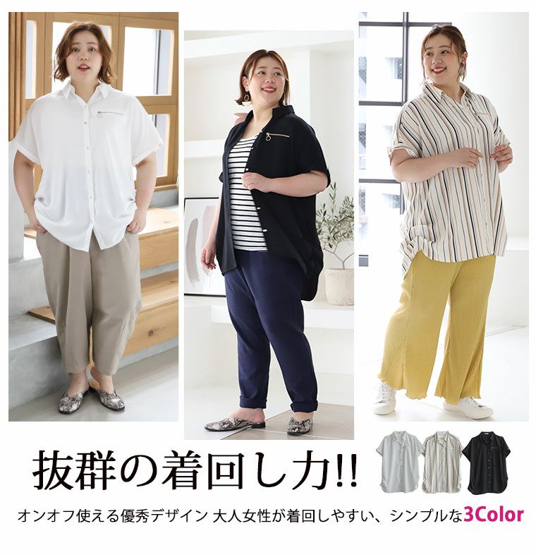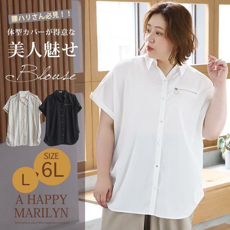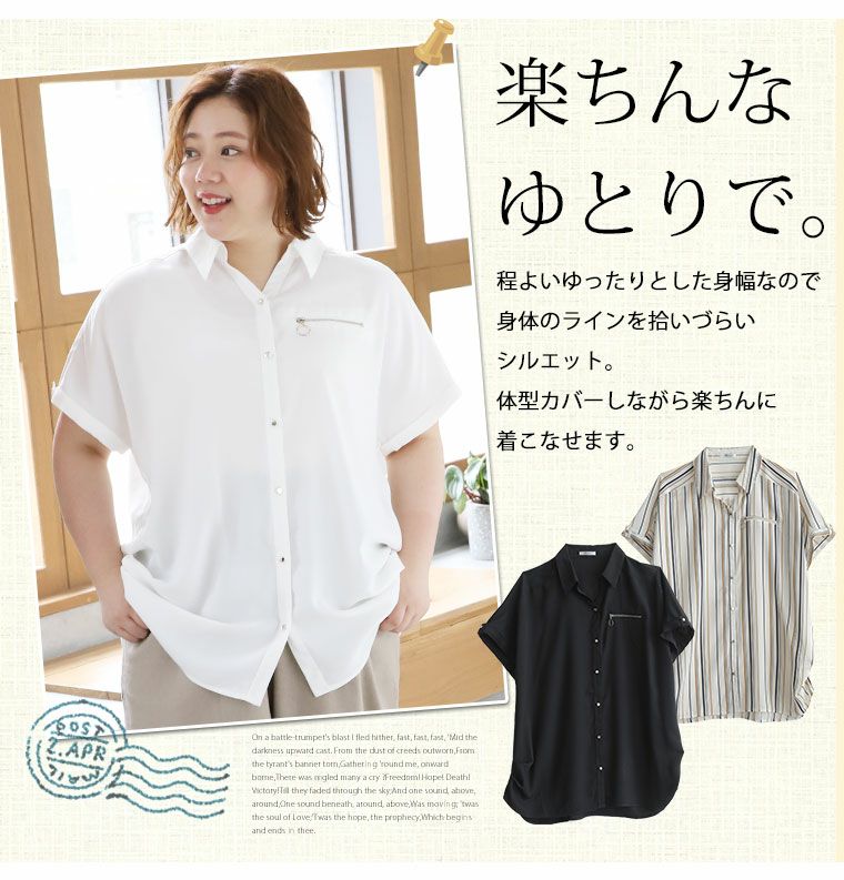 他の画像を見る オリジナル シャツ トップス LL 3L 4L 5L 6L 夏物 夏服 夏用 ぽっちゃり ゆったり お腹 胸周り 二の腕カバー 半袖 かわいい プラスサイズ 無地 と ストライプ で選べる ジップ付 サイドギャザー ブラウス | 大きいサイズの通販ならハッピーマリリン 価格 ¥ 1,980 税込 4.25 在庫切れ お気に入りに登録する
