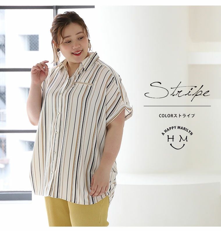 他の画像を見る オリジナル シャツトップス LL 3L 4L 5L 6L 夏物 夏服 夏用 ぽっちゃり ゆったり お腹 胸周り 二の腕カバー 腰周り 半袖 プラスサイズ 無地 と ストライプ で選べる フレア袖 バンドカラー ブラウス | 大きいサイズの通販ならハッピーマリリン 価格 ¥ 2,190 税込 3.71 在庫切れ お気に入りに登録する