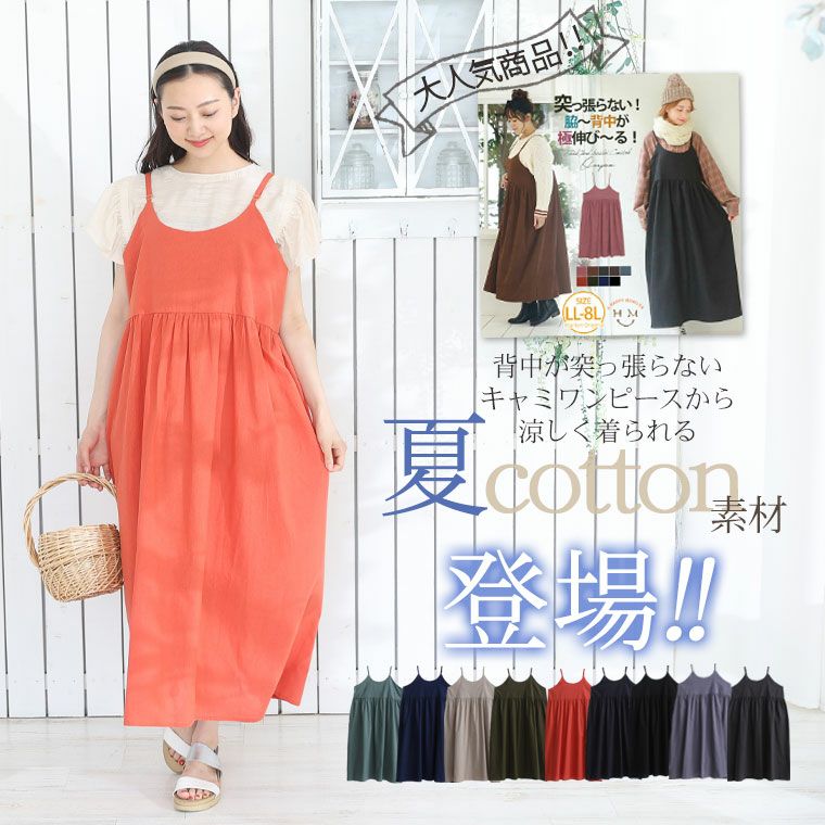 他の画像を見る オリジナル ワンピ キャミワンピ LL 3L 4L 5L 6L 7L 8L 夏物 夏服 夏用 ぽっちゃり ゆったり かわいい おしゃれ カジュアル プラスサイズ 涼やかコットン!! 背中が伸びる キャミワンピース | 大きいサイズの通販ならハッピーマリリン 価格 ¥ 2,490 税込 4.19 在庫切れ お気に入りに登録する