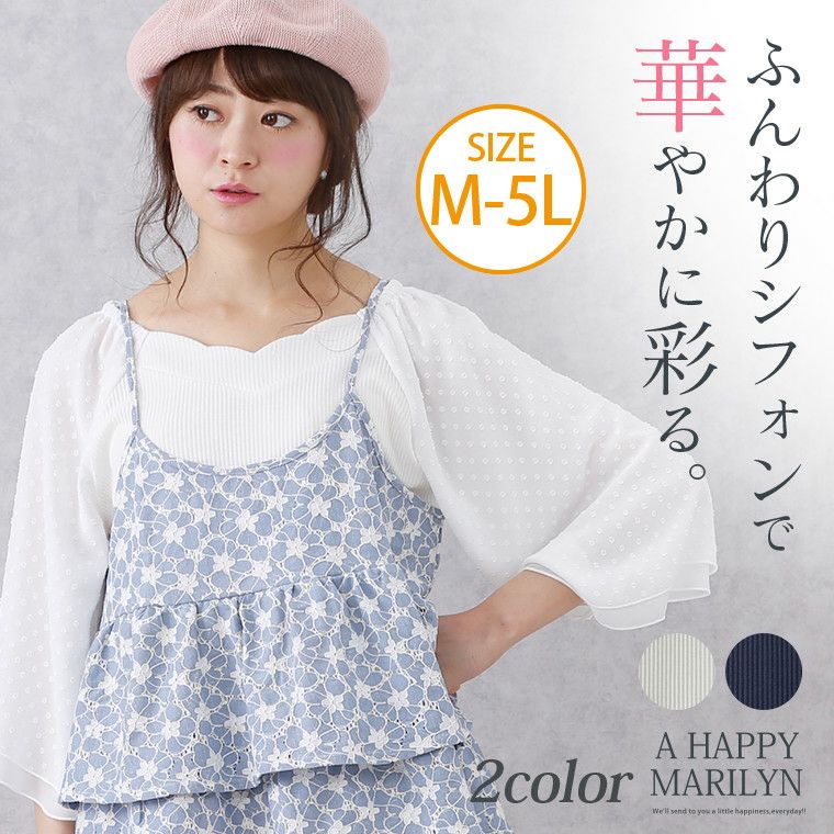 フィット感のあるリブテレコ生地とふんわりワイドなシフォン袖が、上品な大人女子を演出します。