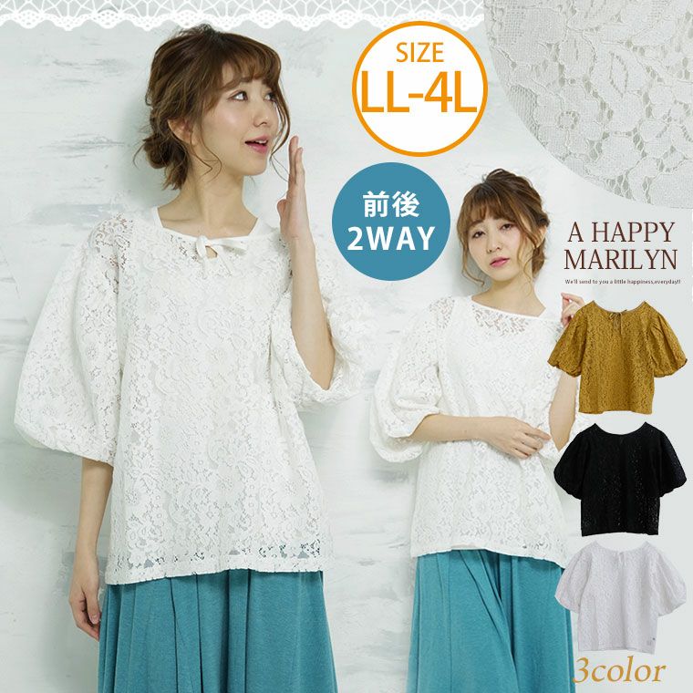 他の画像を見る シャツ トップス LL 3L 4L 春 春物 春服 夏 夏物 夏服 かわいい おしゃれ お洒落 カジュアル 可愛い 大人 袖コンシャス 2way ボリュームスリーブ 五分袖 レースブラウス【メール便可1】 | 大きいサイズの通販ならハッピーマリリン 価格 ¥ 4,939 税込 在庫切れ お気に入りに登録する