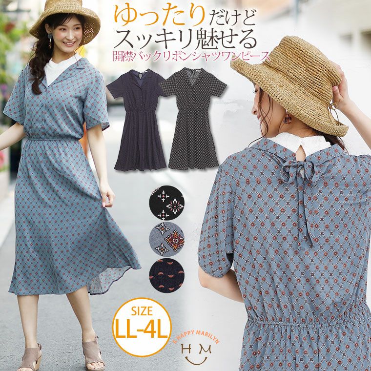 他の画像を見る ワンピ シャツワンピ LL 3L 4L 夏 夏物 夏服 夏用 ぽっちゃり かわいい おしゃれ カジュアル 可愛い 大人 ビッグサイズ 小紋柄 開襟 バックリボン 半袖 シャツワンピース | 大きいサイズの通販ならハッピーマリリン 価格 ¥ 3,555 税込 在庫切れ お気に入りに登録する