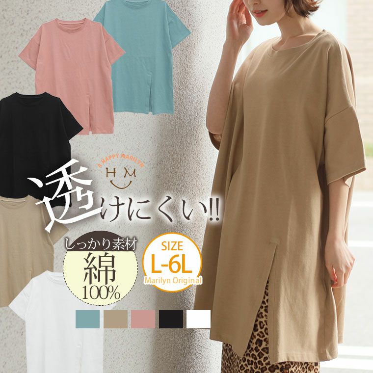 肌触りのよい綿100%生地♪ゆったり着れてスッキリ魅えのスリット入りチュニック