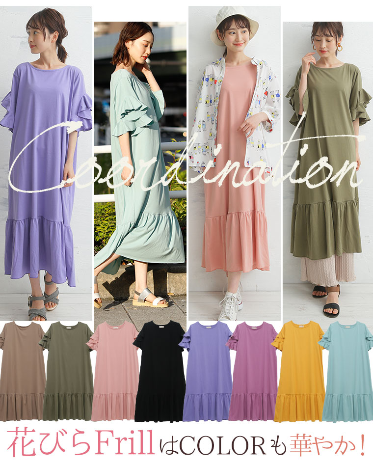 4. 大きいサイズ 袖フリル フェミニン ワンピース