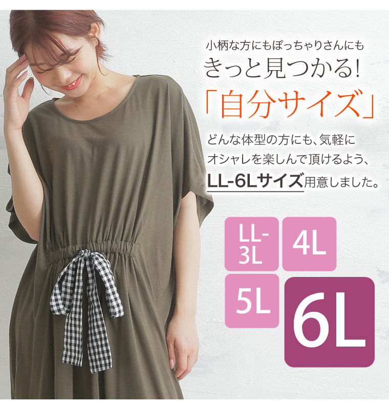 トップス カットソー LL 3L 4L 5L 6L 夏 夏物 夏服 夏用 ゆったり お腹 胸周り お尻 腰周り 半袖 かわいい おしゃれ カジュアル ナチュラル ウエスト ギンガム柄 リボン チュニック