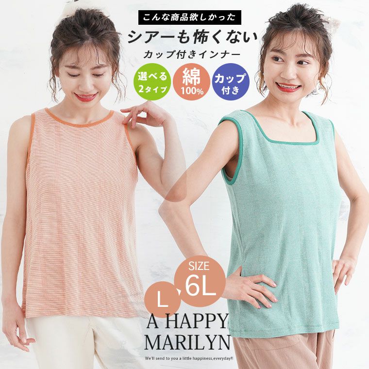 他の画像を見る オリジナル カットソー タンク キャミ LL 3L 4L 5L 6L 夏 夏物 夏服 夏用 お腹 腰周り マルチボーダー リブ アメスリーブ スクエア 【選べる】ホールド感自由自在 シアーもこわくない カップ付きインナー | 大きいサイズの通販ならハッピーマリリン 在庫特価 定価 ¥ 2,490 のところ 価格 ¥ 1,500 税込 3.25 お気に入りに登録する