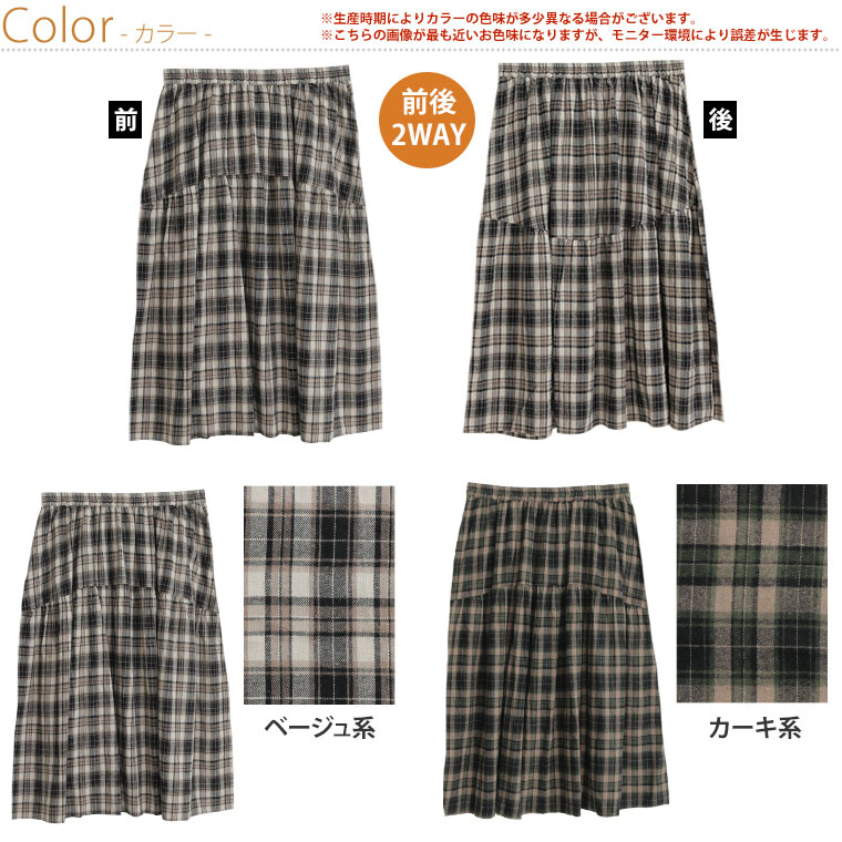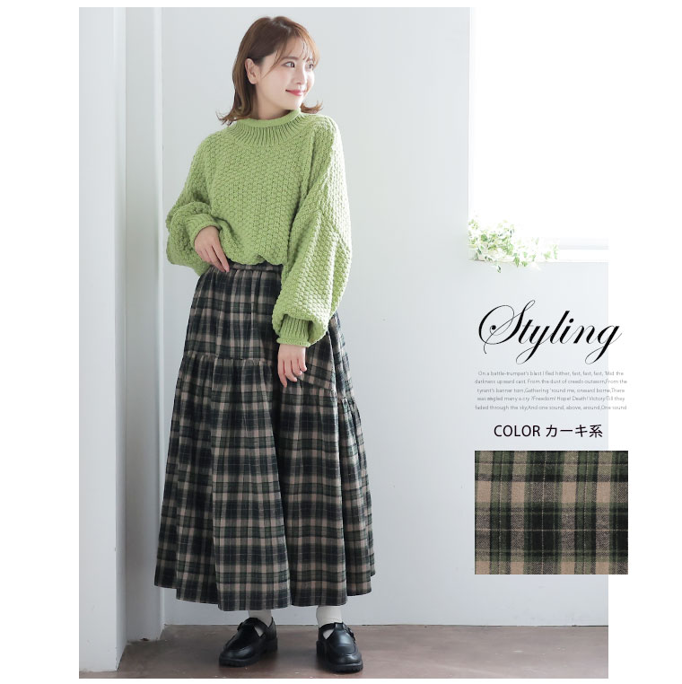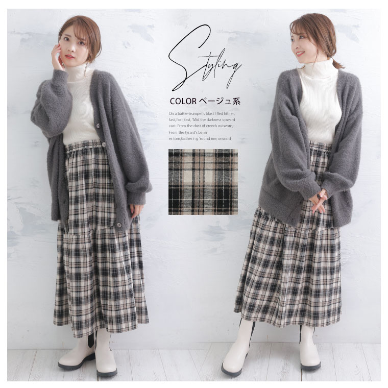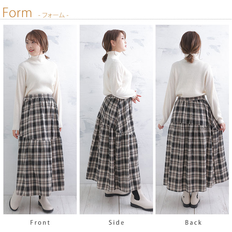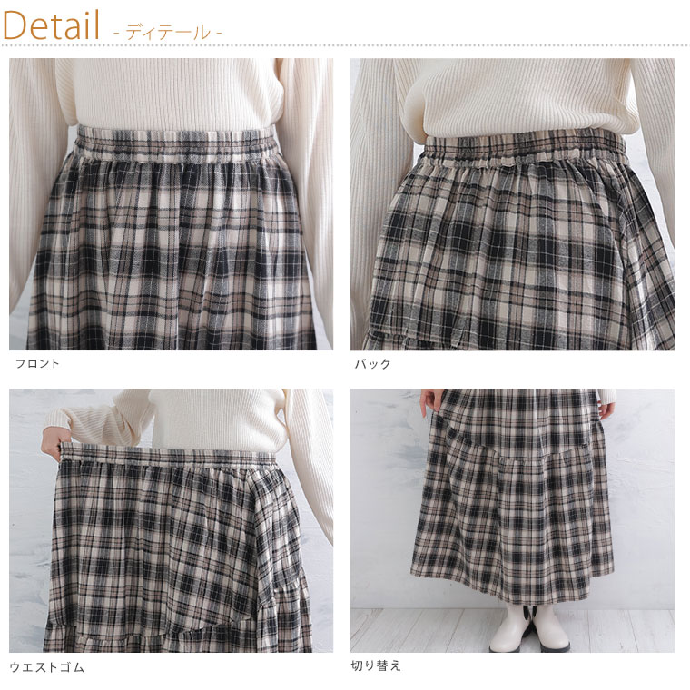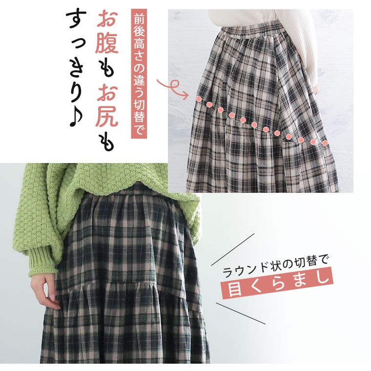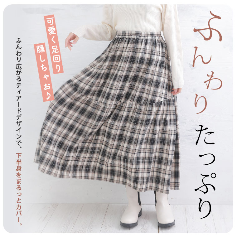 ふんわりと広がるシルエットがかわいいチェックロングスカート