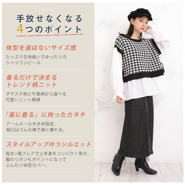 他の画像を見る オリジナル ニット シャツ LL 3L 4L 5L 6L 秋 秋物 秋冬 ぽっちゃり ゆったり お腹 胸周り 二の腕カバー 腰周り 長袖 プラスサイズ フレア ブラウス ドッキング 柄 ニットベスト | 大きいサイズの通販ならハッピーマリリン 在庫特価 定価 ¥ 3,190 のところ 価格 ¥ 2,500 税込 4.67 お気に入りに登録する
