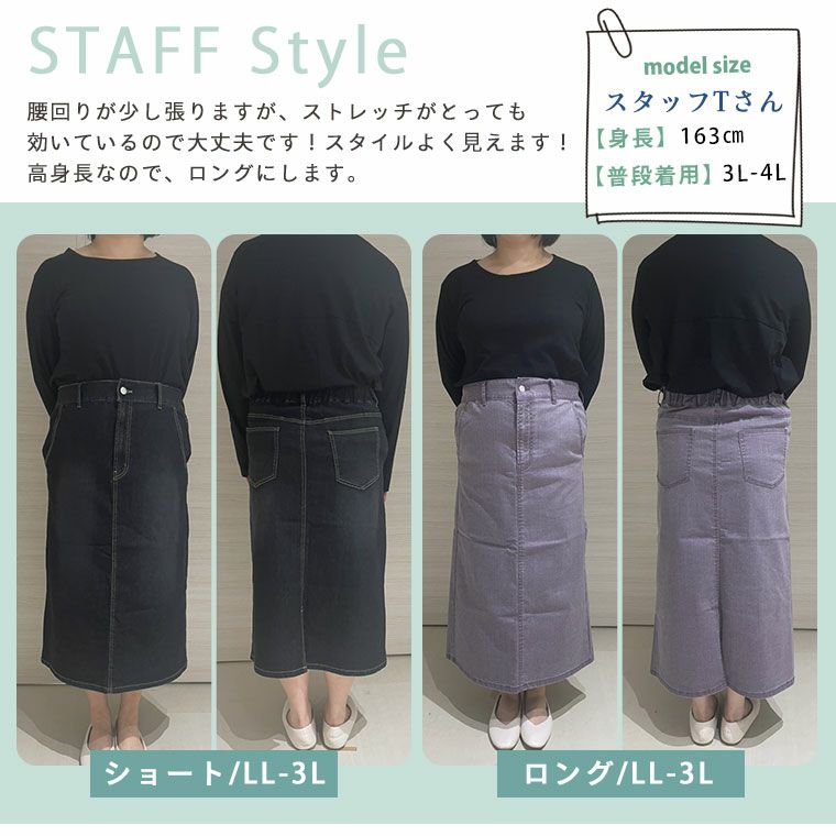 他の画像を見る オリジナル ボトムス LL 3L 4L 5L 6L お尻 腰周り デニムスカート カラーデニム 2丈 選べる ストレッチデニム素材で動きやすい! 360度美人なシルエットな タイトスカート | 大きいサイズの通販ならハッピーマリリン 在庫特価 定価 ¥ 3,490 のところ 価格 ¥ 2,500 税込 4.39 お気に入りに登録する