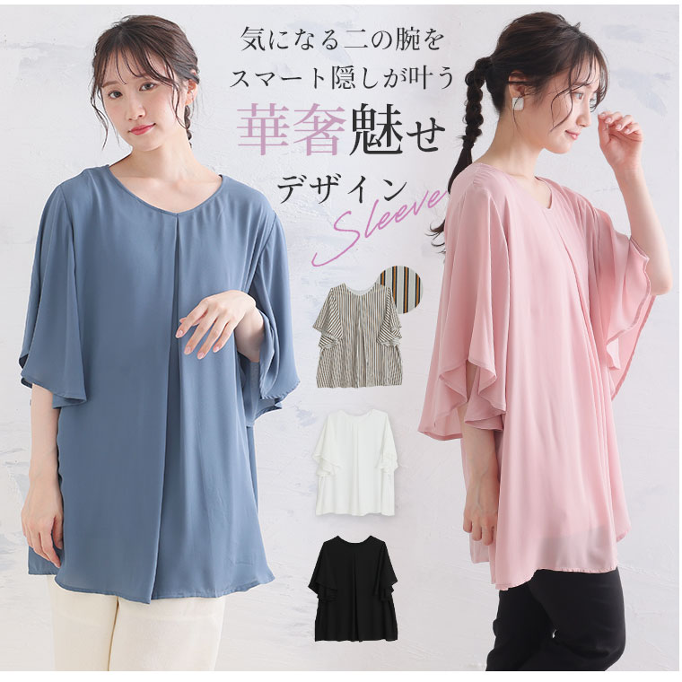 フレア袖で体型カバーと綺麗が叶う!涼しげトップス