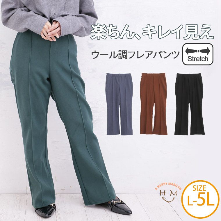 ストレッチ生地で楽ちんなのにキレイ見え!ウール調フレアパンツ