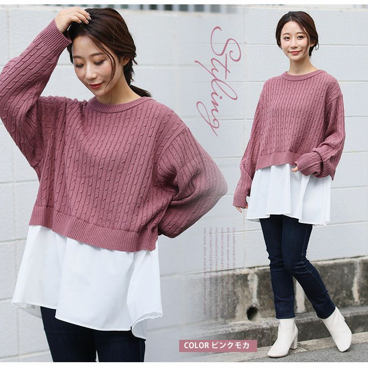 他の画像を見る オリジナル ニット セーター LL 3L 4L 5L 6L 秋 冬 お腹 長袖 フェイクレイヤード 重ね着風 ペプラム 体型カバー 可愛くお腹を隠しちゃえ! ふんわり可愛い ケーブルニット | 大きいサイズの通販ならハッピーマリリン 在庫特価 定価 ¥ 3,490 のところ 価格 ¥ 2,500 税込 4.31 お気に入りに登録する