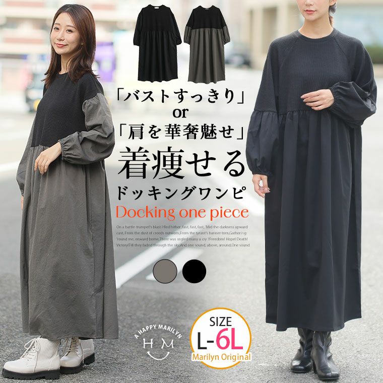 「バストすっきり」or「肩を華奢魅せ」着痩せるドッキングワンピ