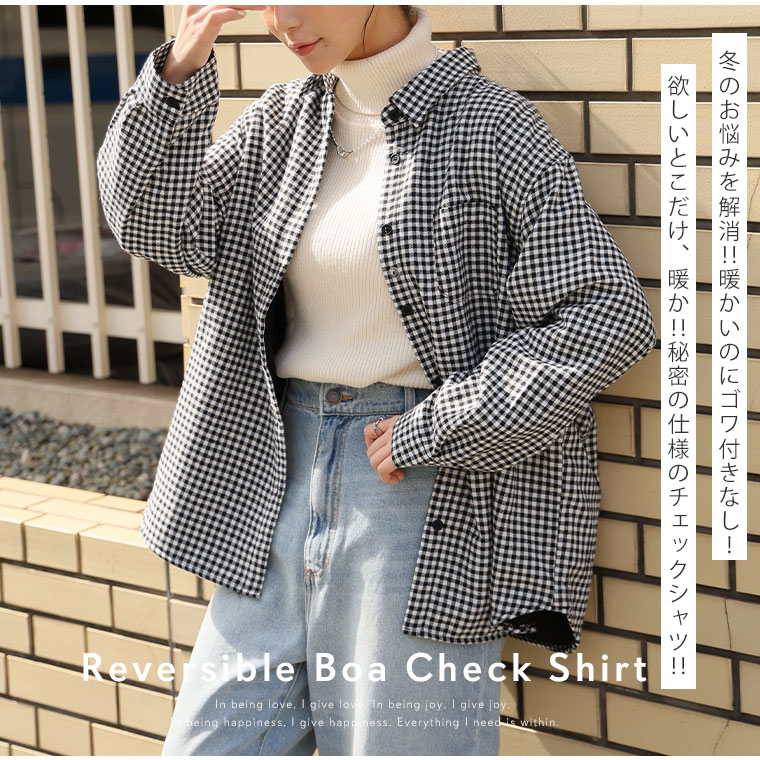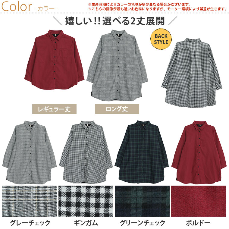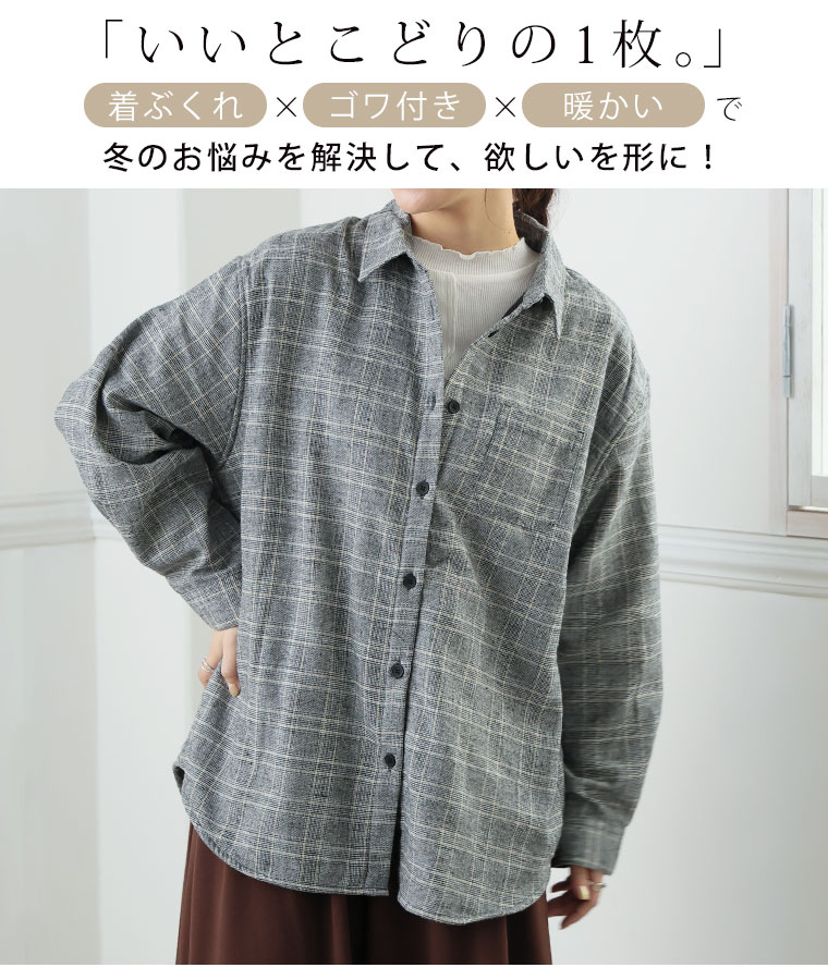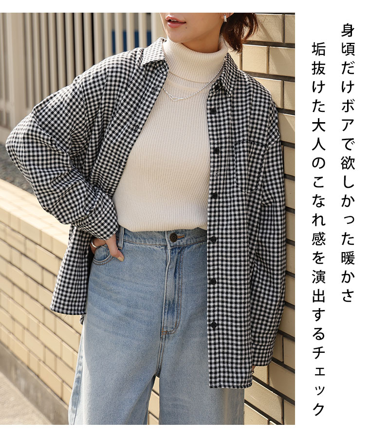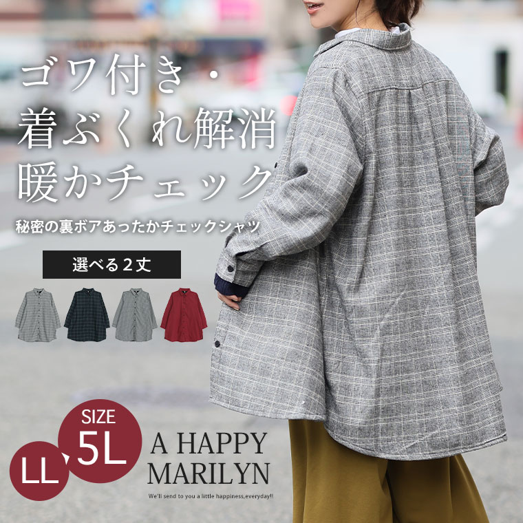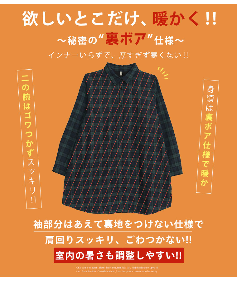 5. 大きいサイズ 選べる2カタ 冬のお悩み解消! ごわつき・着ぶくれ回避 秘密の裏ボア あったか チェック シャツ 裏起毛