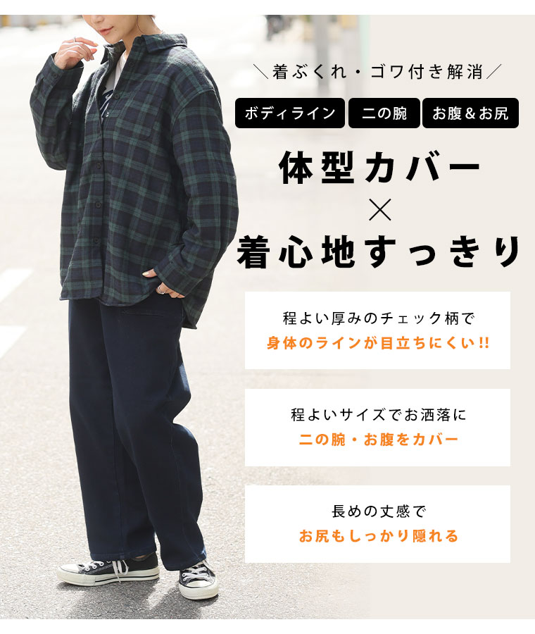 トップス LL 3L 4L 5L 長袖 冬 冬物 冬服 ぽっちゃり ゆったり カジュアル 選べる2カタ 冬のお悩み解消! ごわつき・着ぶくれ回避 秘密の裏ボア あったか チェック シャツ 裏起毛