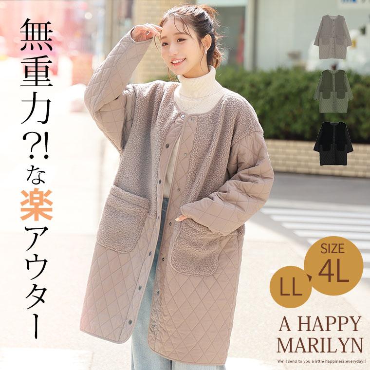 大きいサイズ 軽い! 厚すぎない! 細魅せ切替 ボア切替え ダイヤキルティング コート 軽量