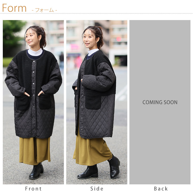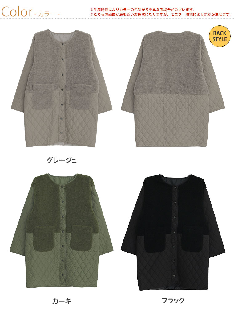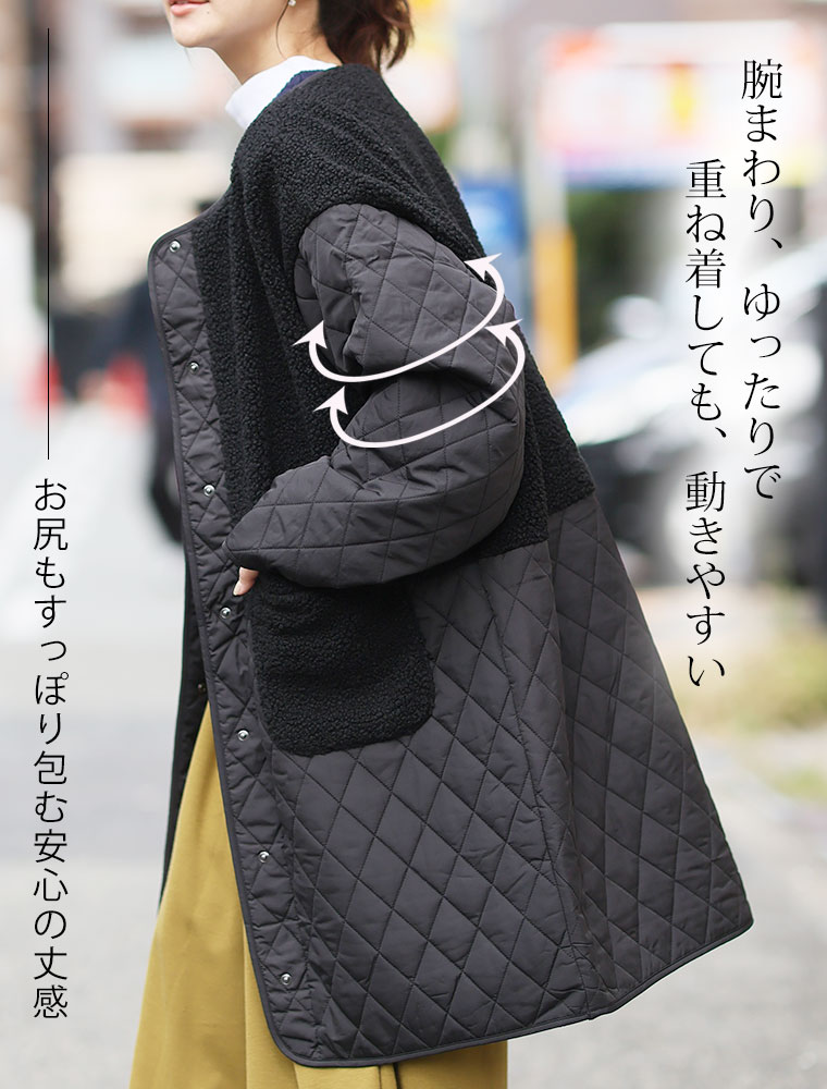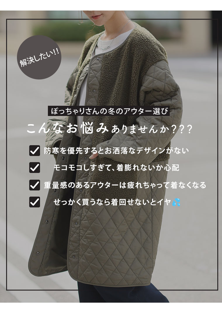 3. 大きいサイズ 軽い! 厚すぎない! 細魅せ切替 ボア切替え ダイヤキルティング コート 軽量