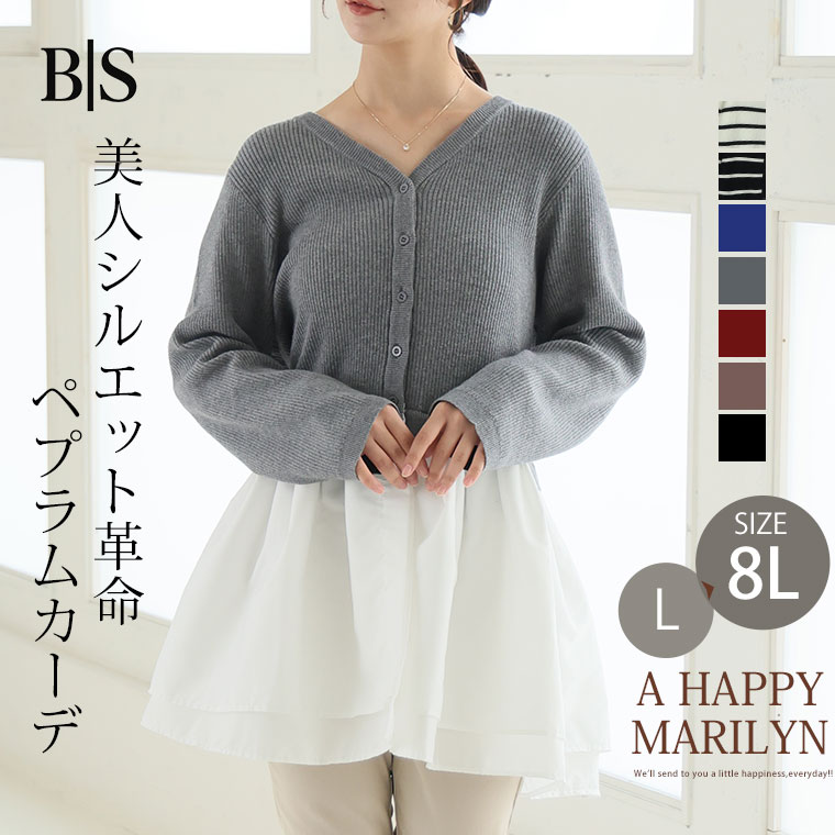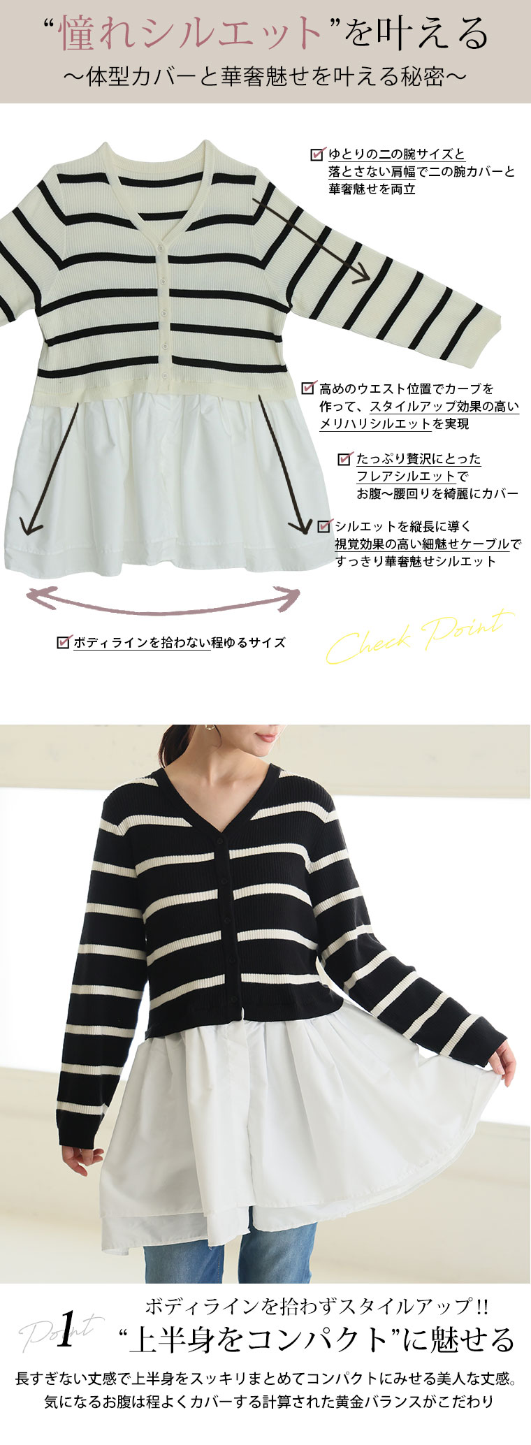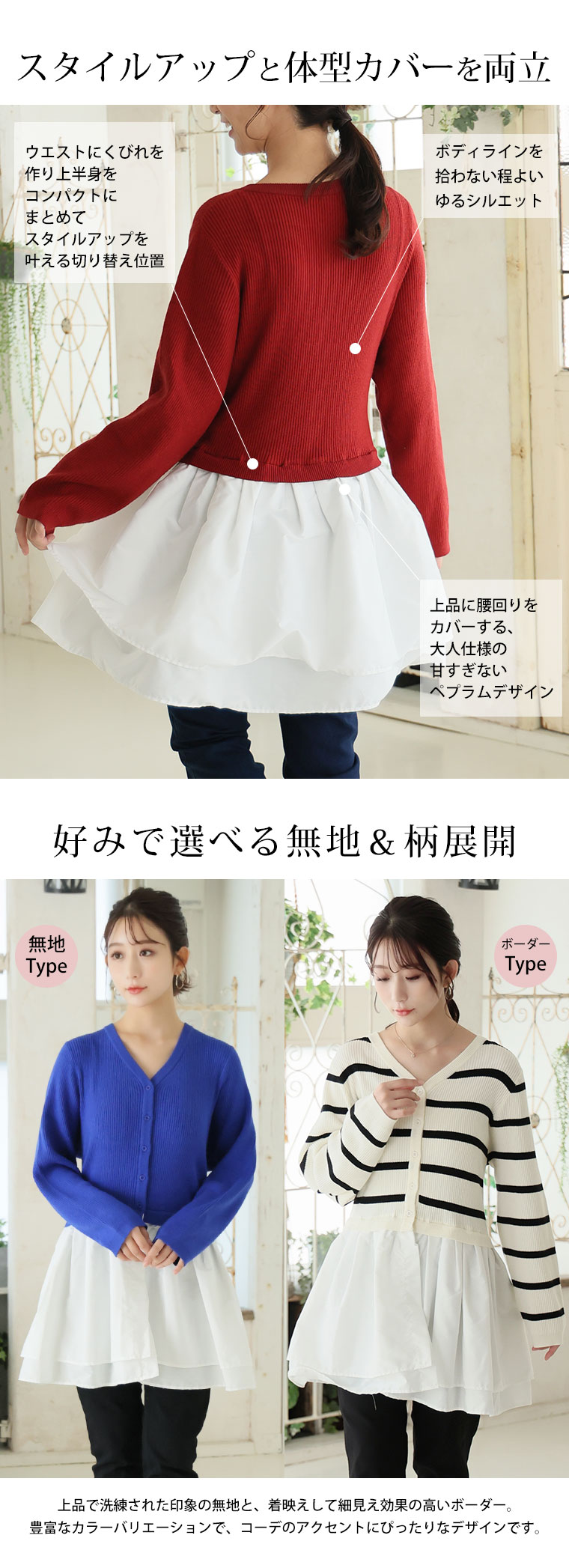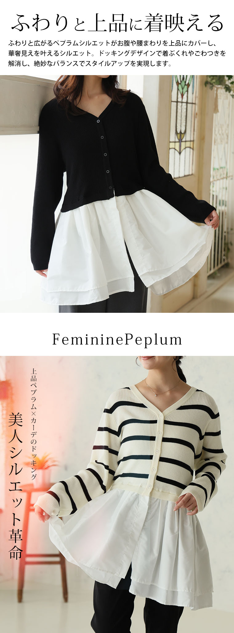 大きいサイズ 嬉しい! お洒落に体型カバーと細魅せを叶える ドッキング ペプラム カーデ