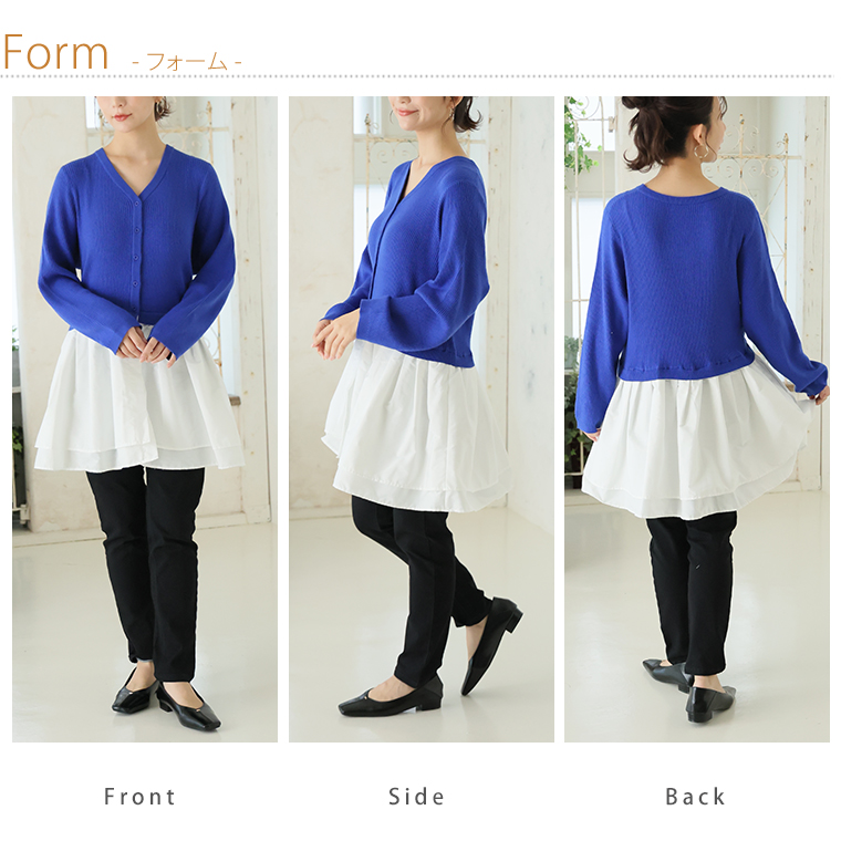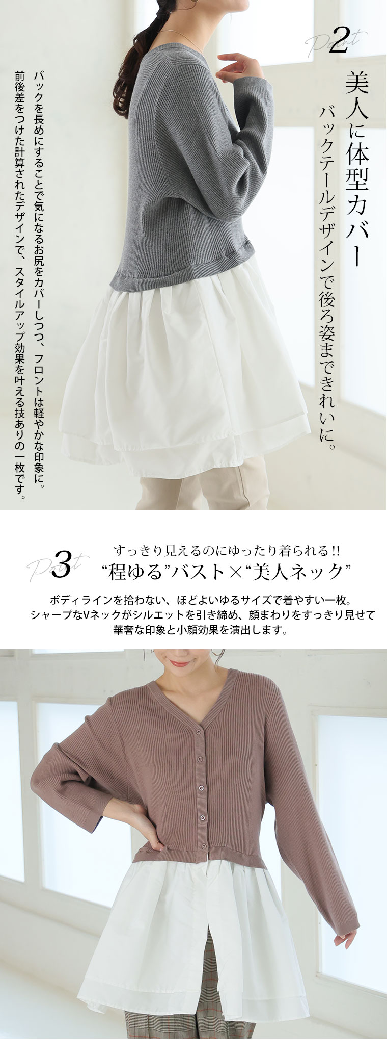 5. 大きいサイズ 嬉しい! お洒落に体型カバーと細魅せを叶える ドッキング ペプラム カーデ