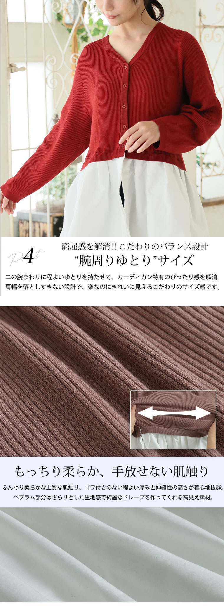 4. 大きいサイズ 嬉しい! お洒落に体型カバーと細魅せを叶える ドッキング ペプラム カーデ