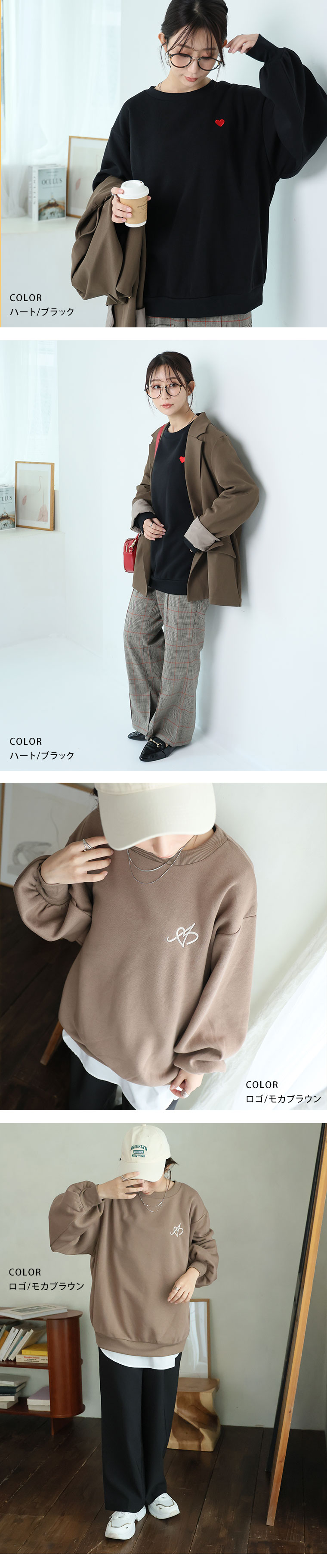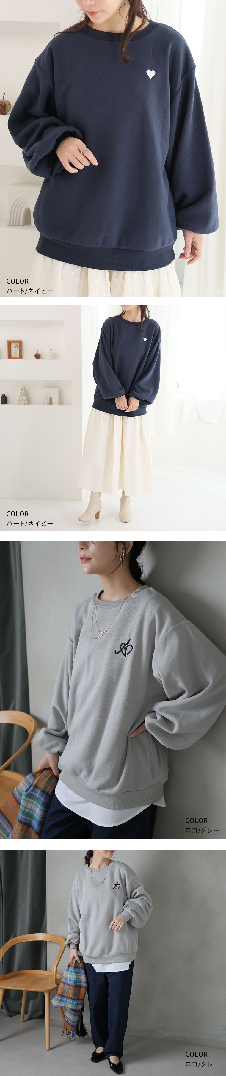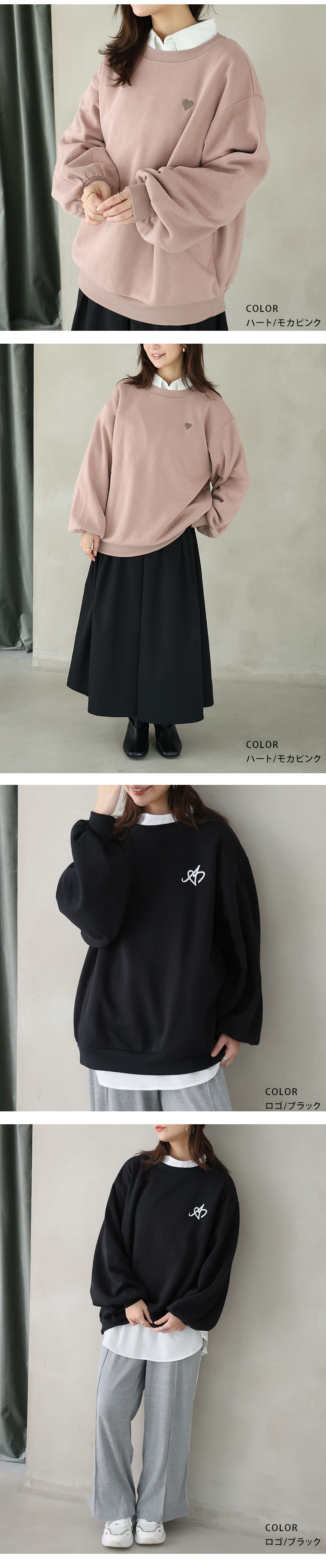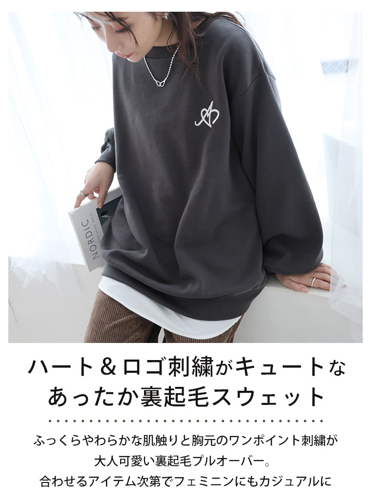 ハート&ロゴ刺繍がキュートなあったか裏起毛スウェット