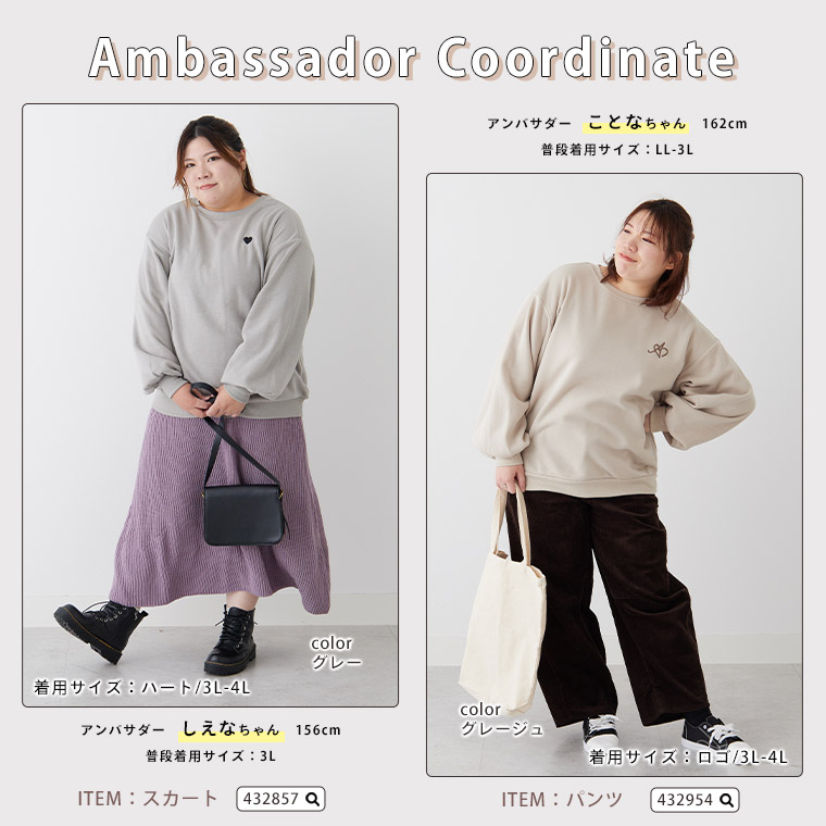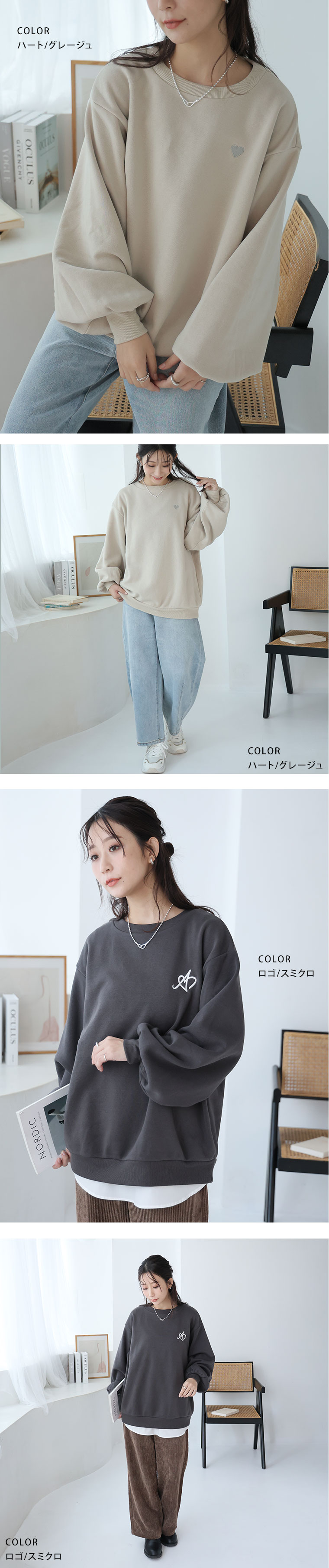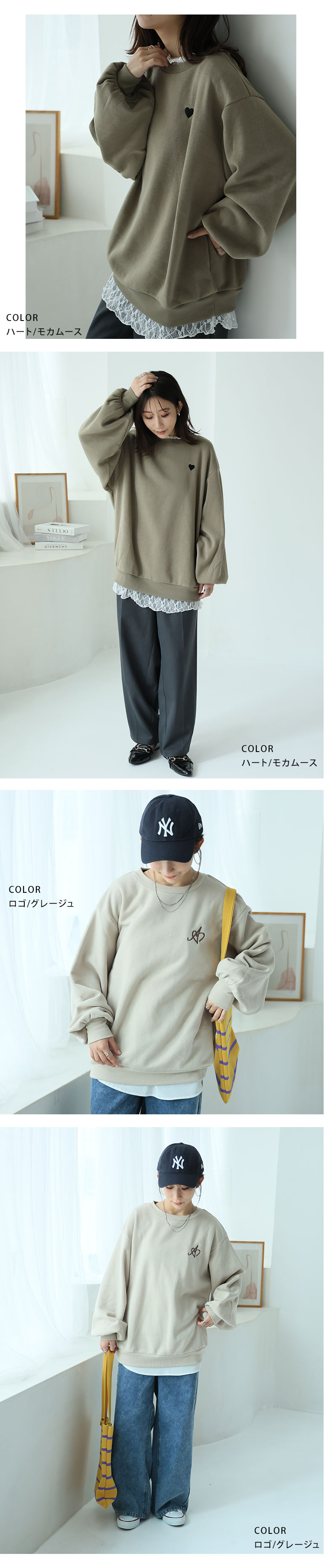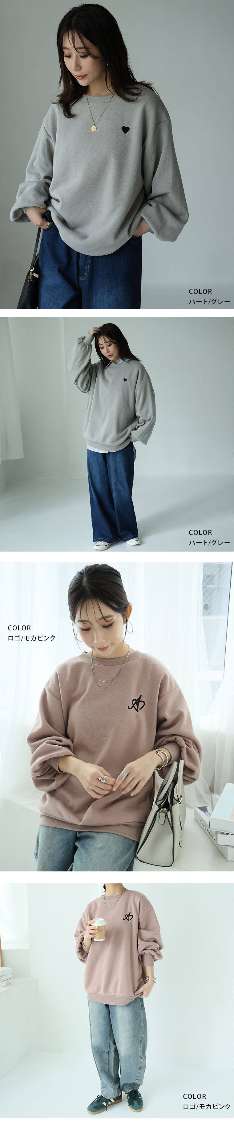 ハート&ロゴ刺繍がキュートなあったか裏起毛スウェット