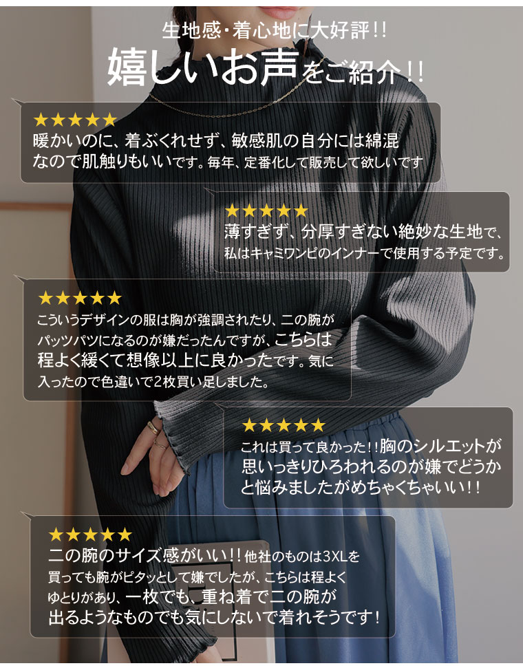 脱・窮屈!着回し優秀『首元苦しくない』タートルリブトップス