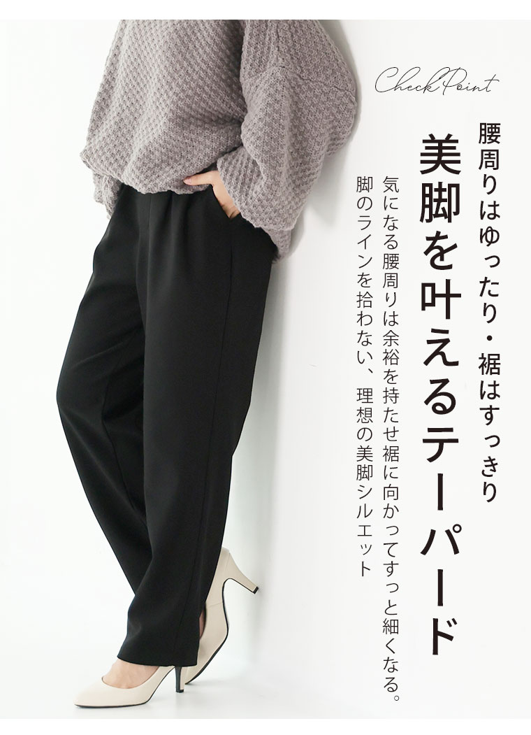 4. 大きいサイズ タイツいらずで下半身ぽかぽか! 2丈から選べる テーパードパンツ【ストレッチ】