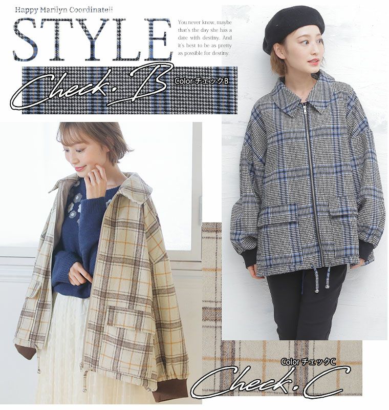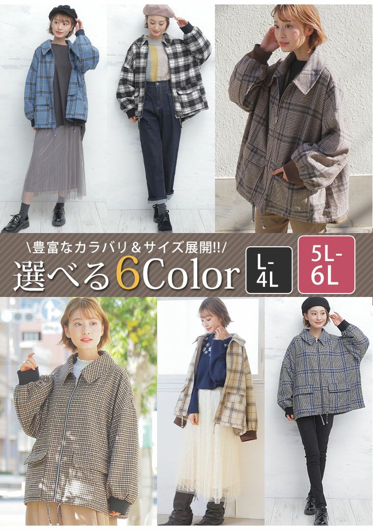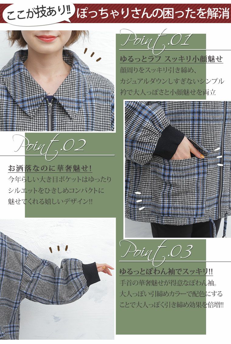 他の画像を見る オリジナル ジャケット LL 3L 4L 5L 6L 冬 冬物 冬服 ぽっちゃり ゆったり お腹 胸周り 二の腕カバー 腰周り ゆるっとラフな大人 チェック柄 の パフ袖 ブルゾン ガンクラブ ガンクラ ウール風 ウールライク | 大きいサイズの通販ならハッピーマリリン 価格 ¥ 3,990 税込 4.36 在庫切れ お気に入りに登録する