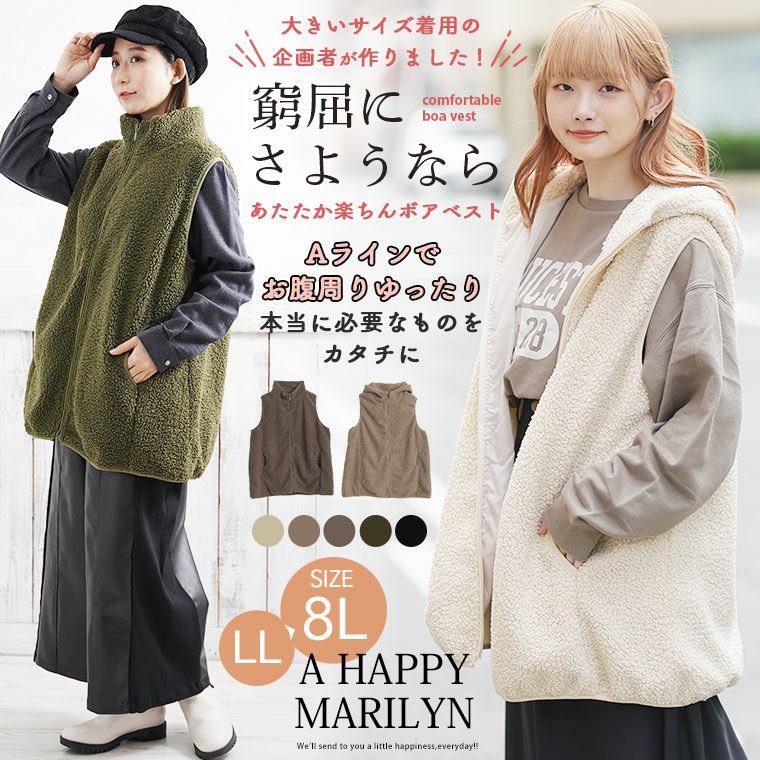 他の画像を見る 羽織り LL 3L 4L 5L 6L 7L 8L 秋 秋物 秋服 冬 冬物 冬服 プラスサイズ 腰周り 大きいサイズの企画者が作りました! ほんのりAラインでお腹周り ゆったり ボア ベスト | 大きいサイズの通販ならハッピーマリリン 価格 ¥ 3,390 税込 4.71 お気に入りに登録する