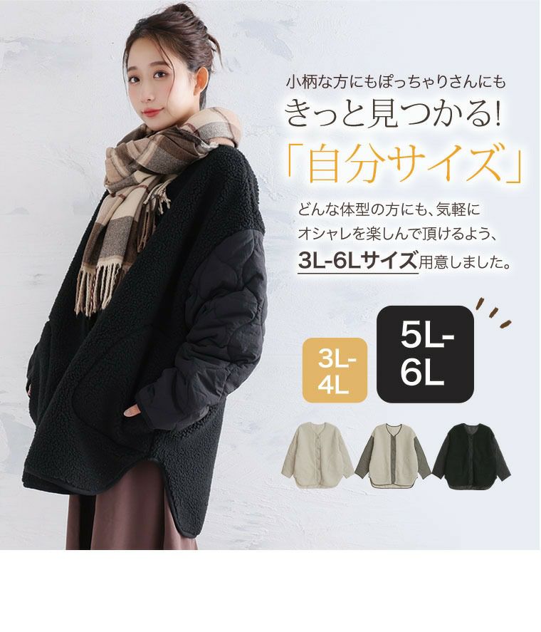 他の画像を見る ブルゾン 3L 4L 5L 6L 冬 冬物 冬服 ぽっちゃり ゆったり 冬アウター 軽い コート 羽織り キルティング プラスサイズ かわいい おしゃれ カジュアル 袖キルト ボアジャケット | 大きいサイズの通販ならハッピーマリリン SALE 定価 ¥ 5,990 のところ 価格 ¥ 4,191 税込 4.00 お気に入りに登録する