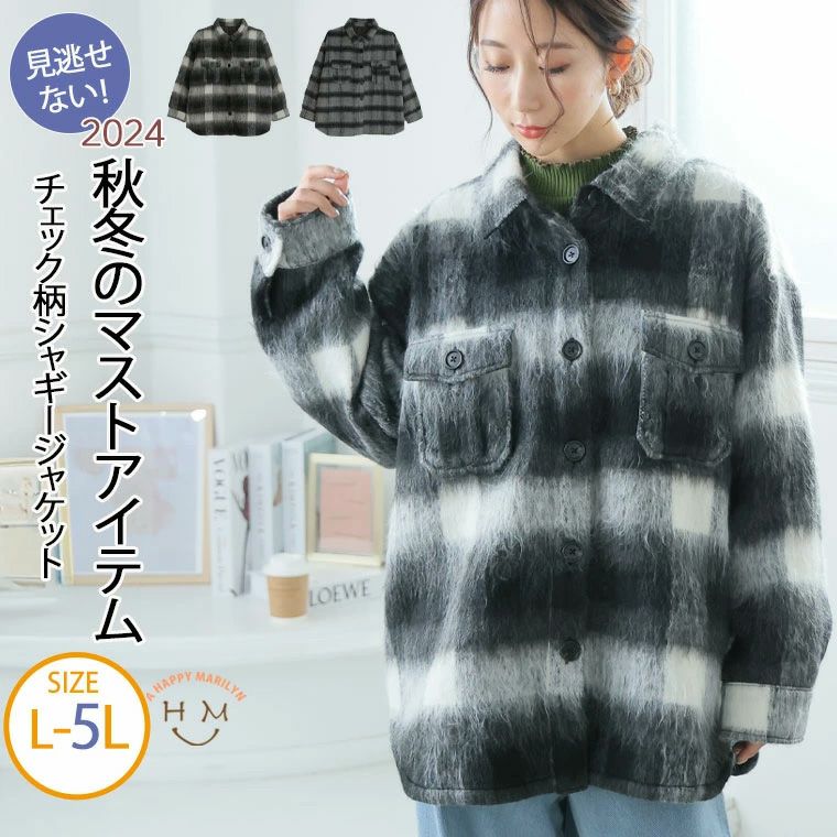 他の画像を見る アウター ジャケット LL 3L 4L 5L 秋 秋物 秋服 冬 冬物 冬服 長袖 胸周り 二の腕カバー ぽっちゃり ゆったり プラスサイズ カジュアル ナチュラル チェック柄 シャギー ジャケット | 大きいサイズの通販ならハッピーマリリン 価格 ¥ 5,490 税込 お気に入りに登録する