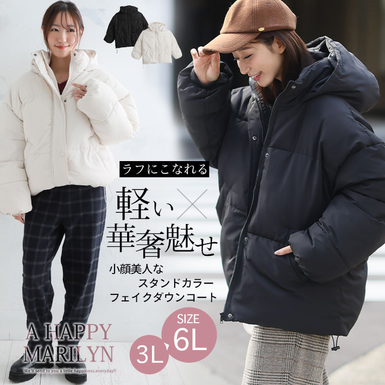 コート フェイクダウンコート 3L 4L 5L 6L 冬 冬物 冬服 オフィス 大人 着やせ 体型カバー ビジネス 通勤 ママ Rin 小顔美人な軽くて使いやすい スタンドフード フェイクダウン