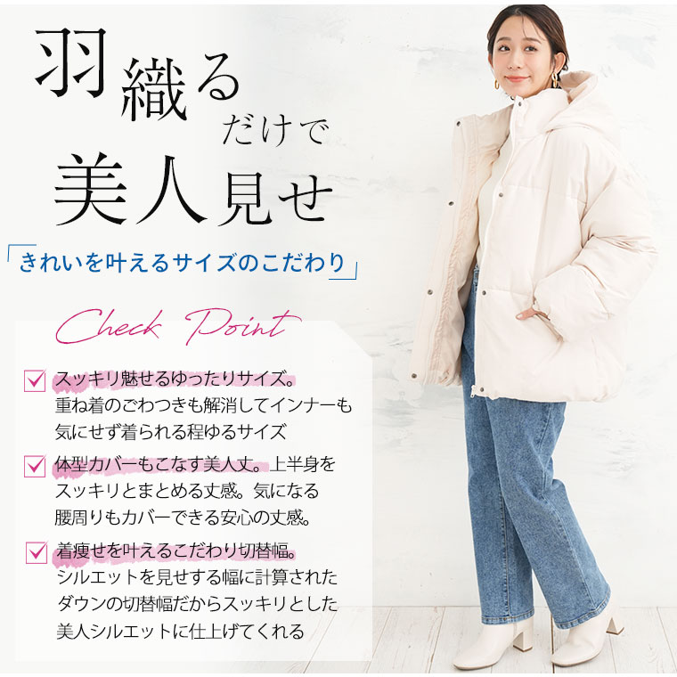 大きいサイズ Rin 小顔美人な軽くて使いやすい スタンドフード フェイクダウン