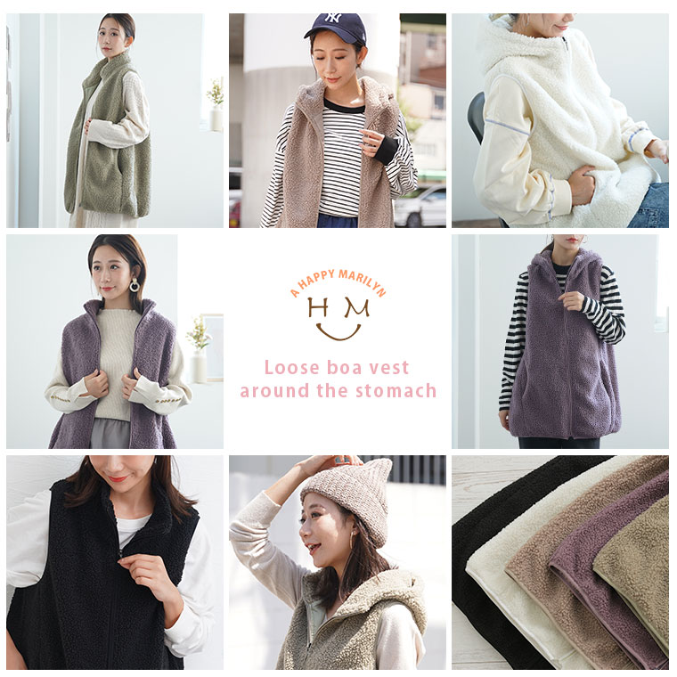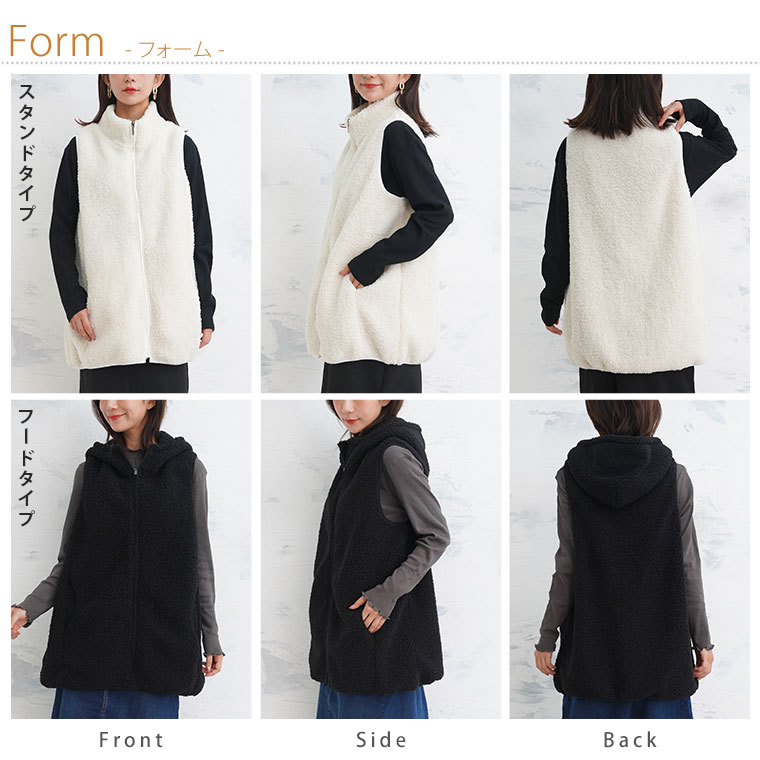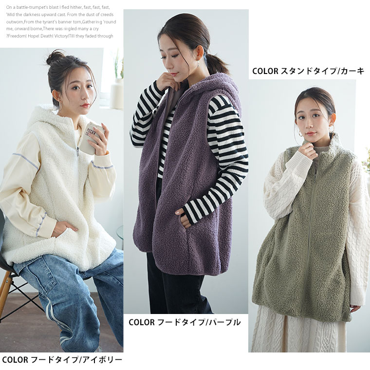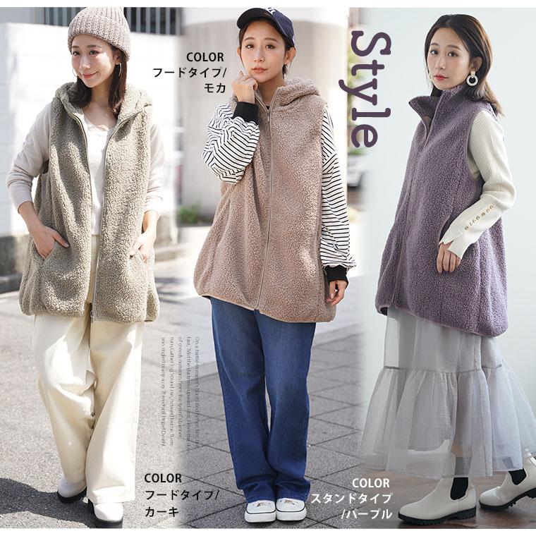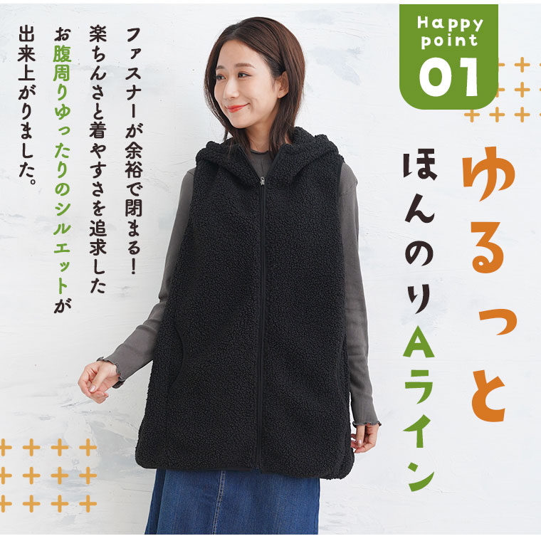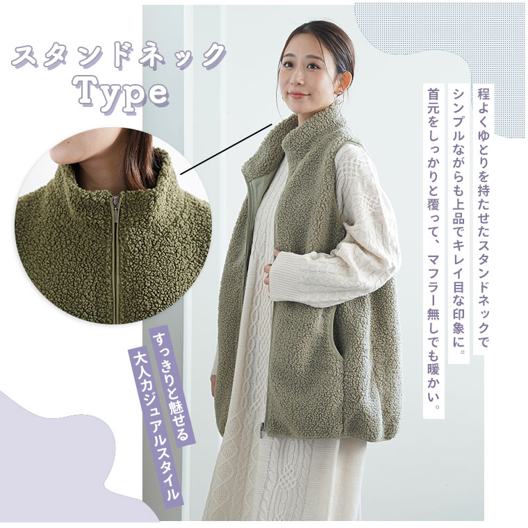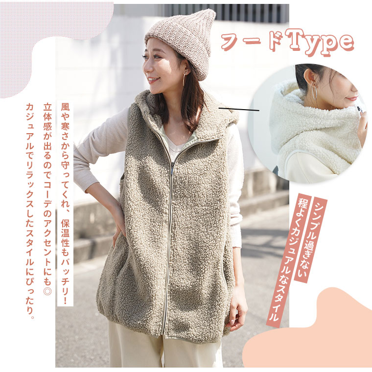 Aラインで余裕でZIPアップ!なにかと頼れるふわもこボアベスト