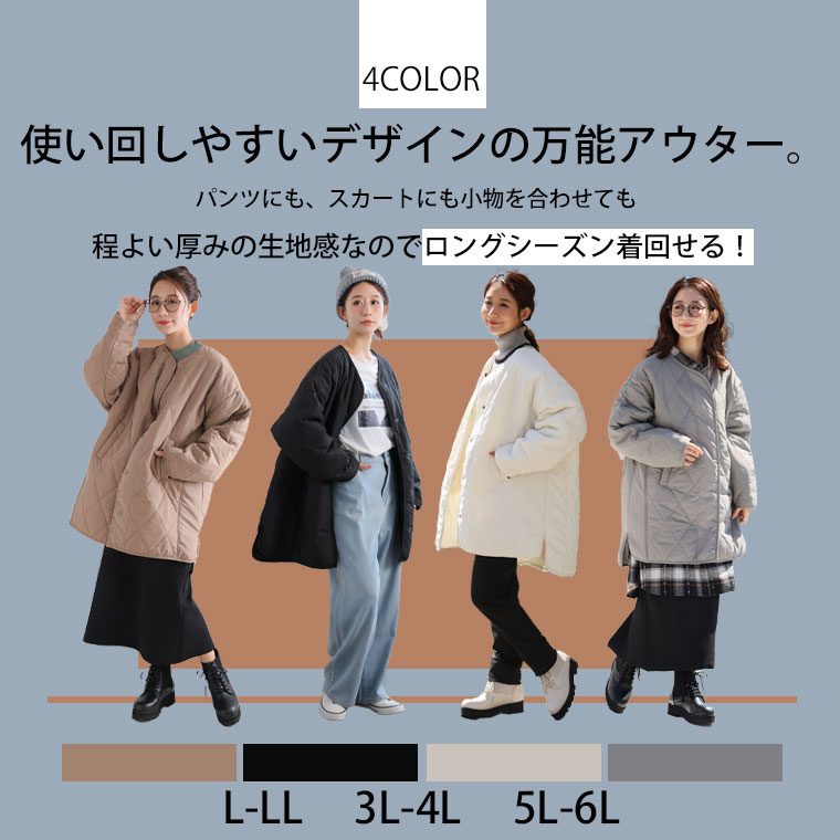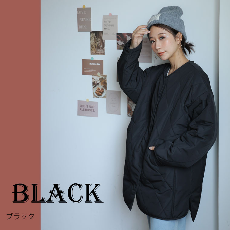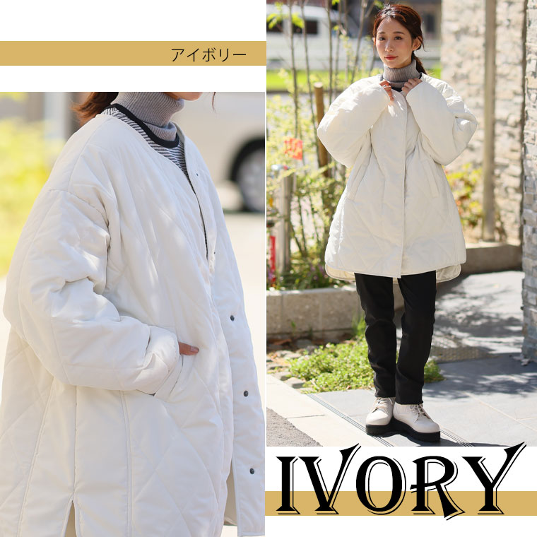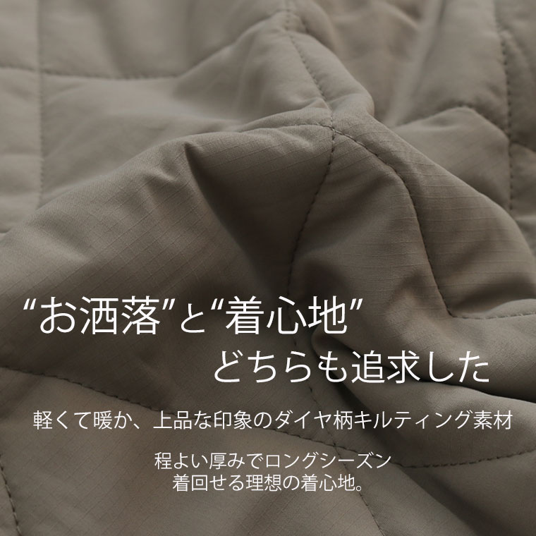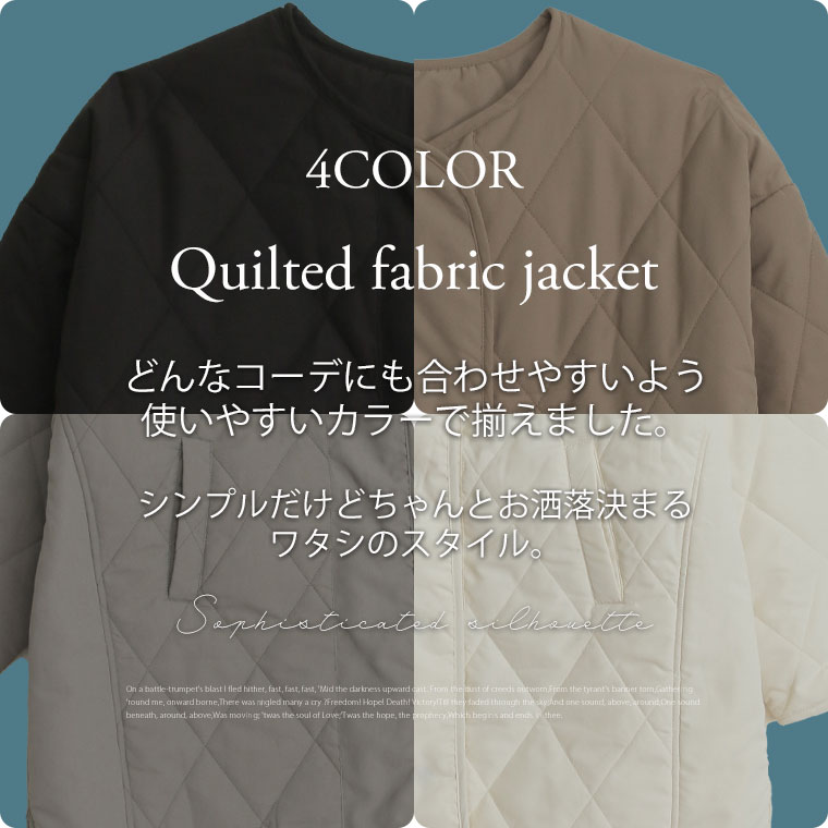 中綿キルティングノーカラージャケット