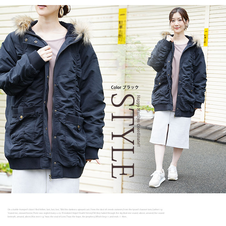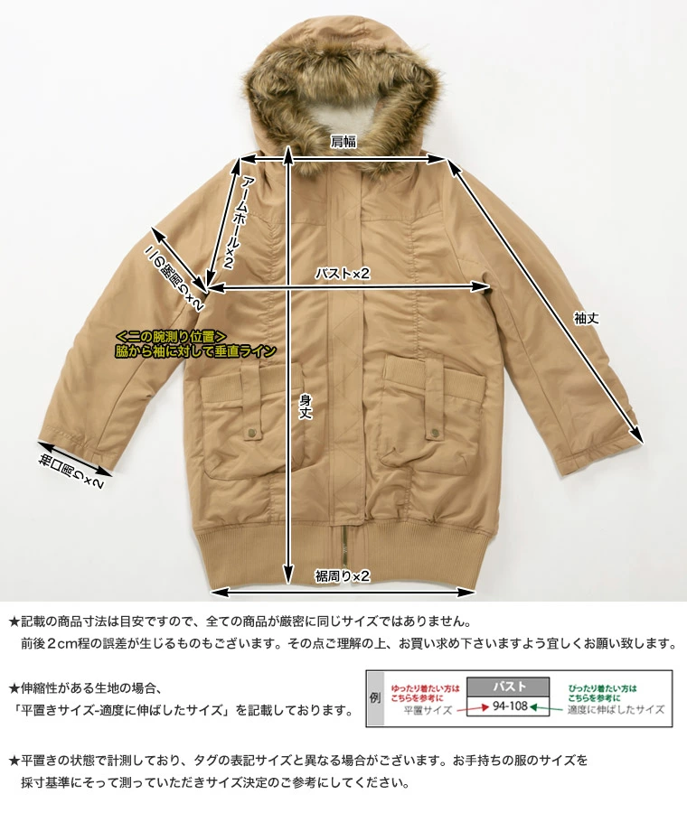 大きいサイズ デザイン変更 サイズ追加 リブ使い 裏ボア 長袖 モッズコート